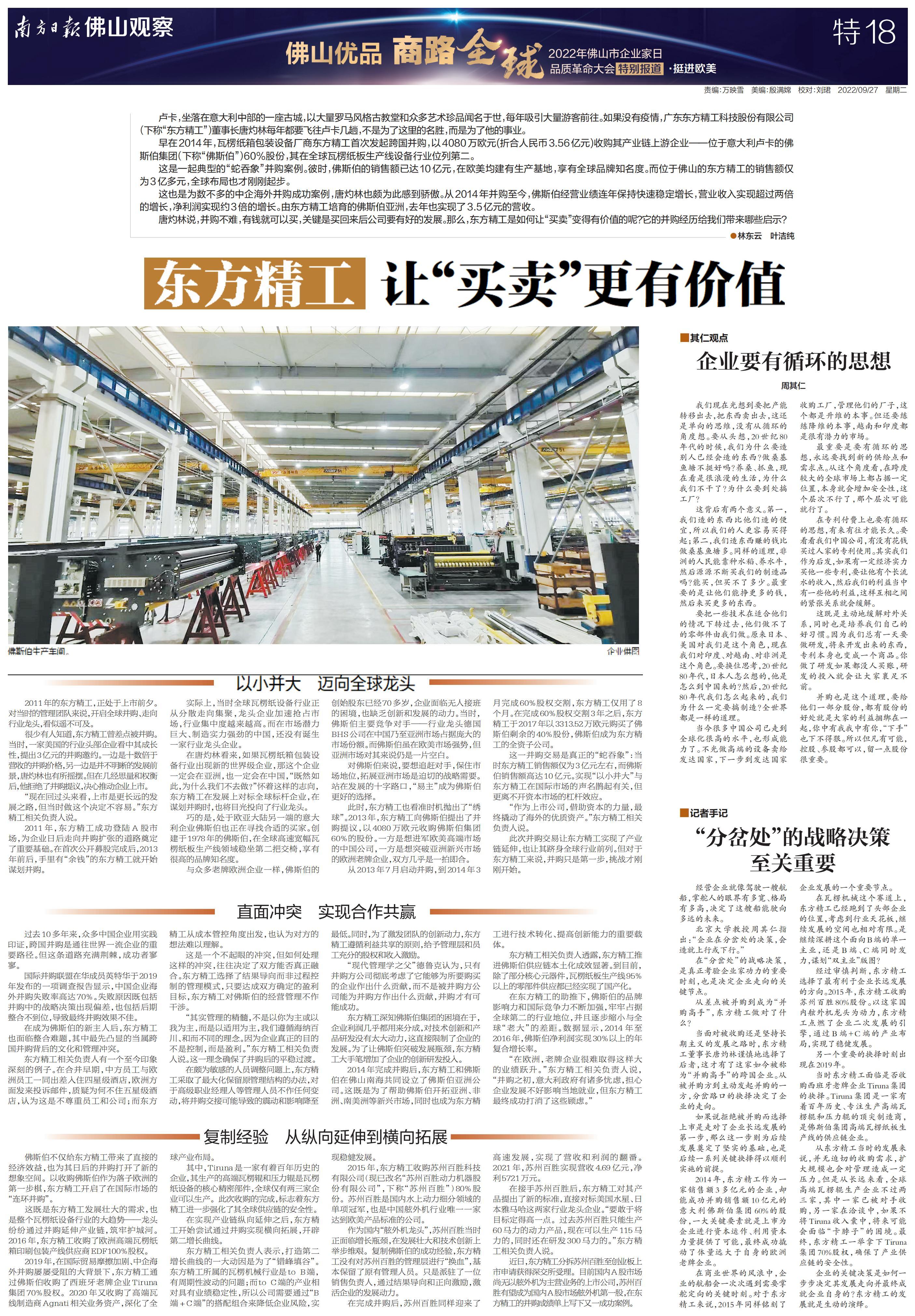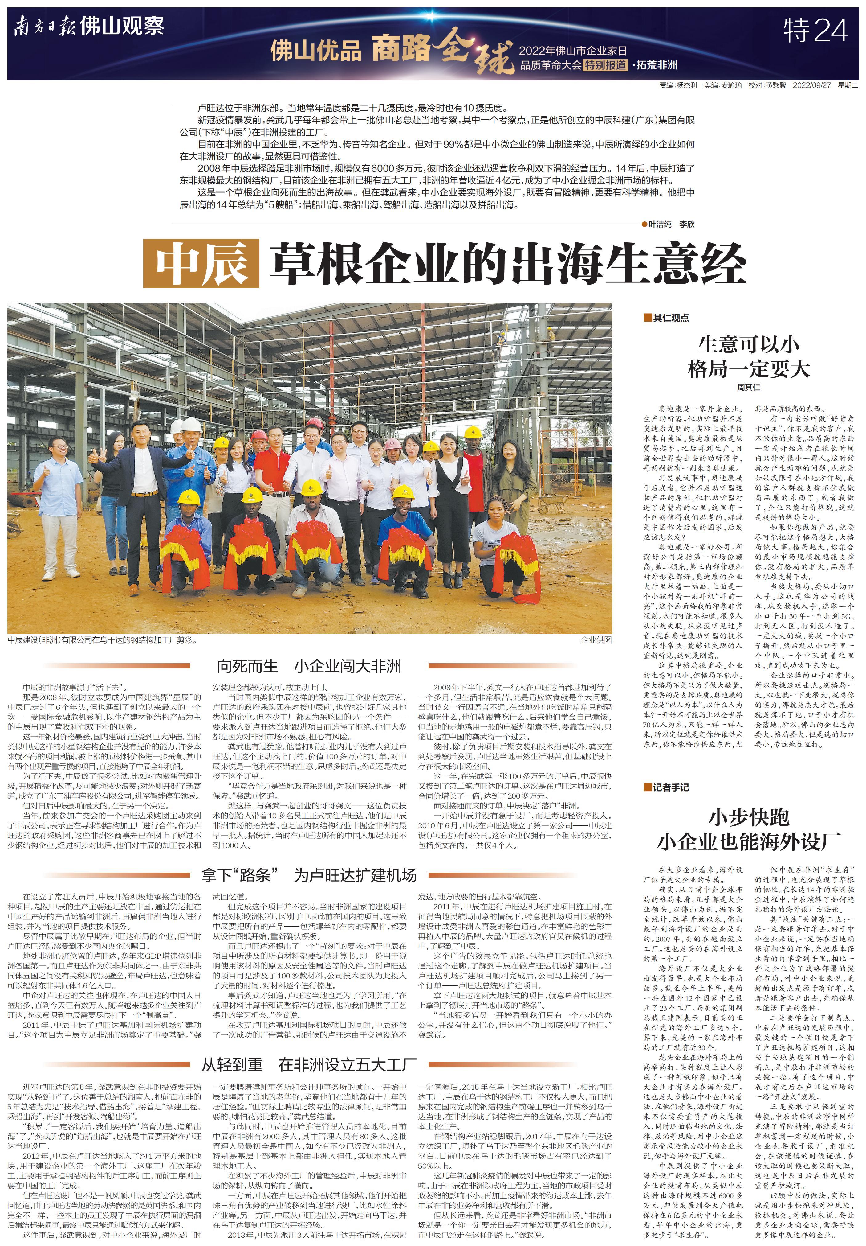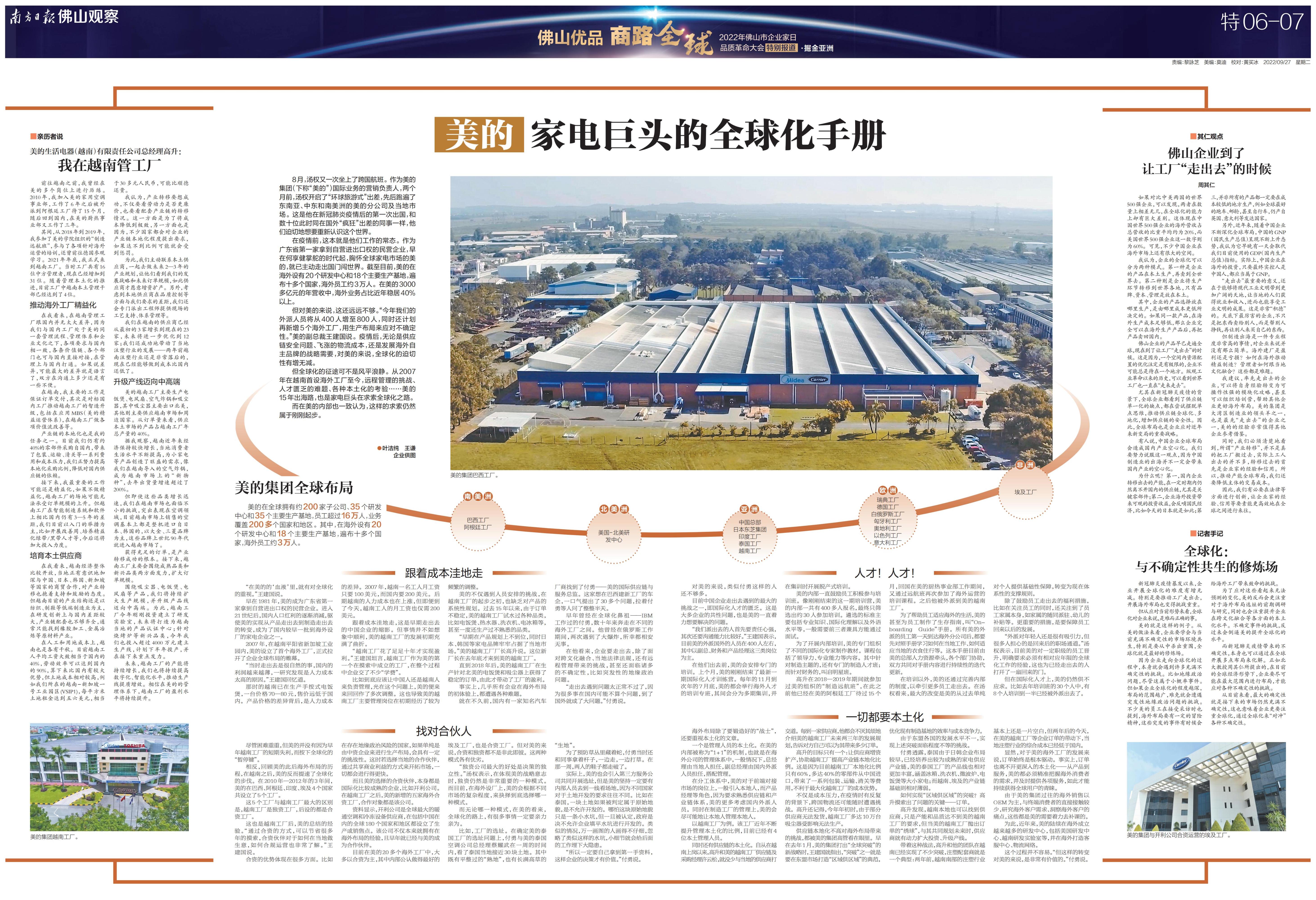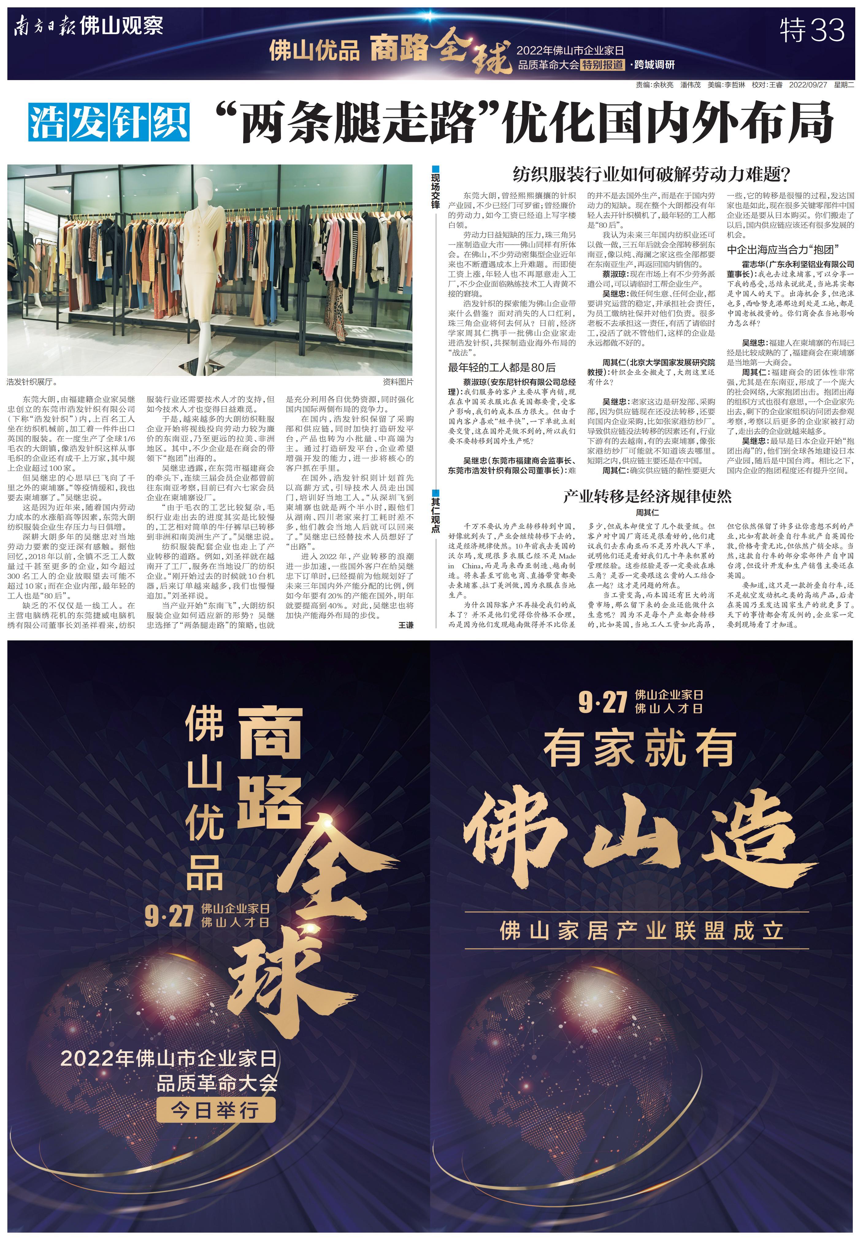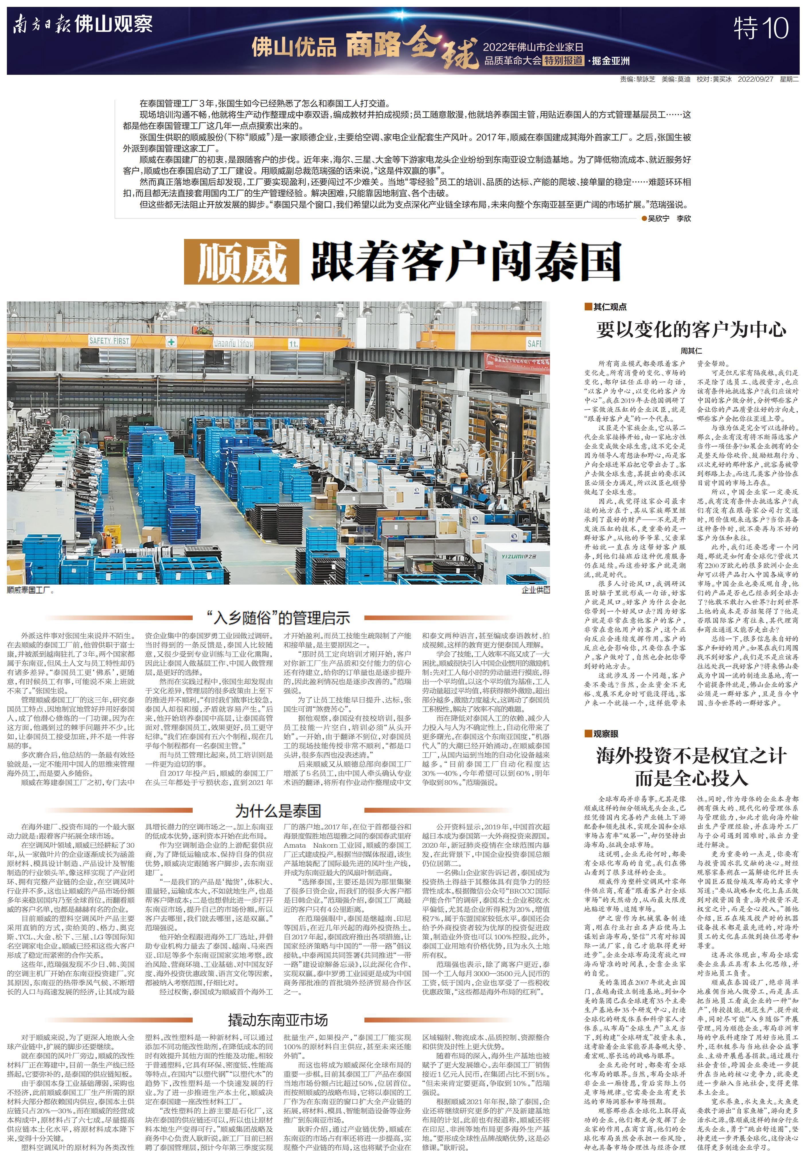 南方日报全程记录,并集结调研成果推出《“佛山优品 商路全球”2022年佛山市企业家日品质革命大会特别报道》特刊,立足佛山,为中国制造融入“双循环”新发展格局探索有效路径。以下为本次特刊全部36个版的报道。