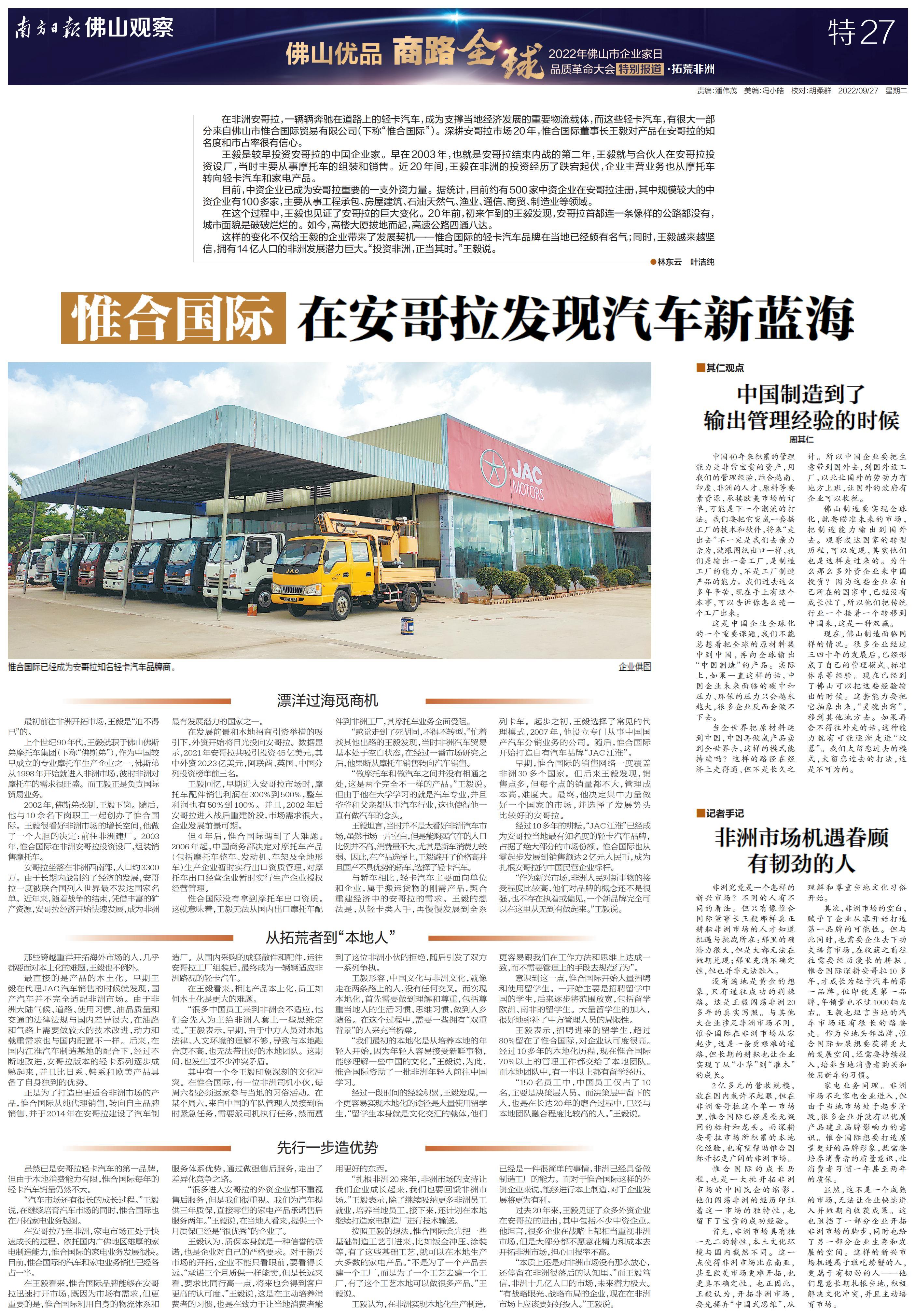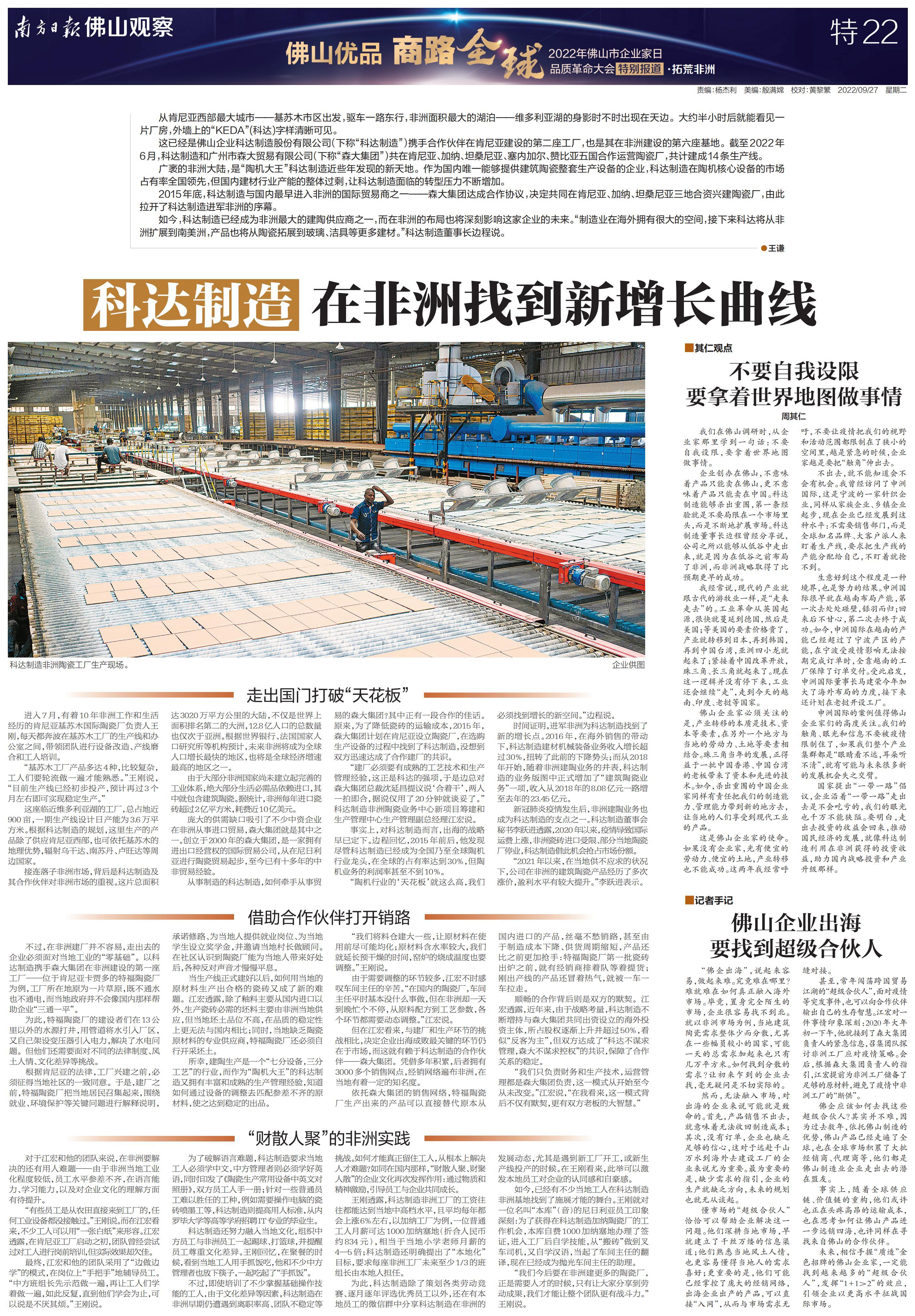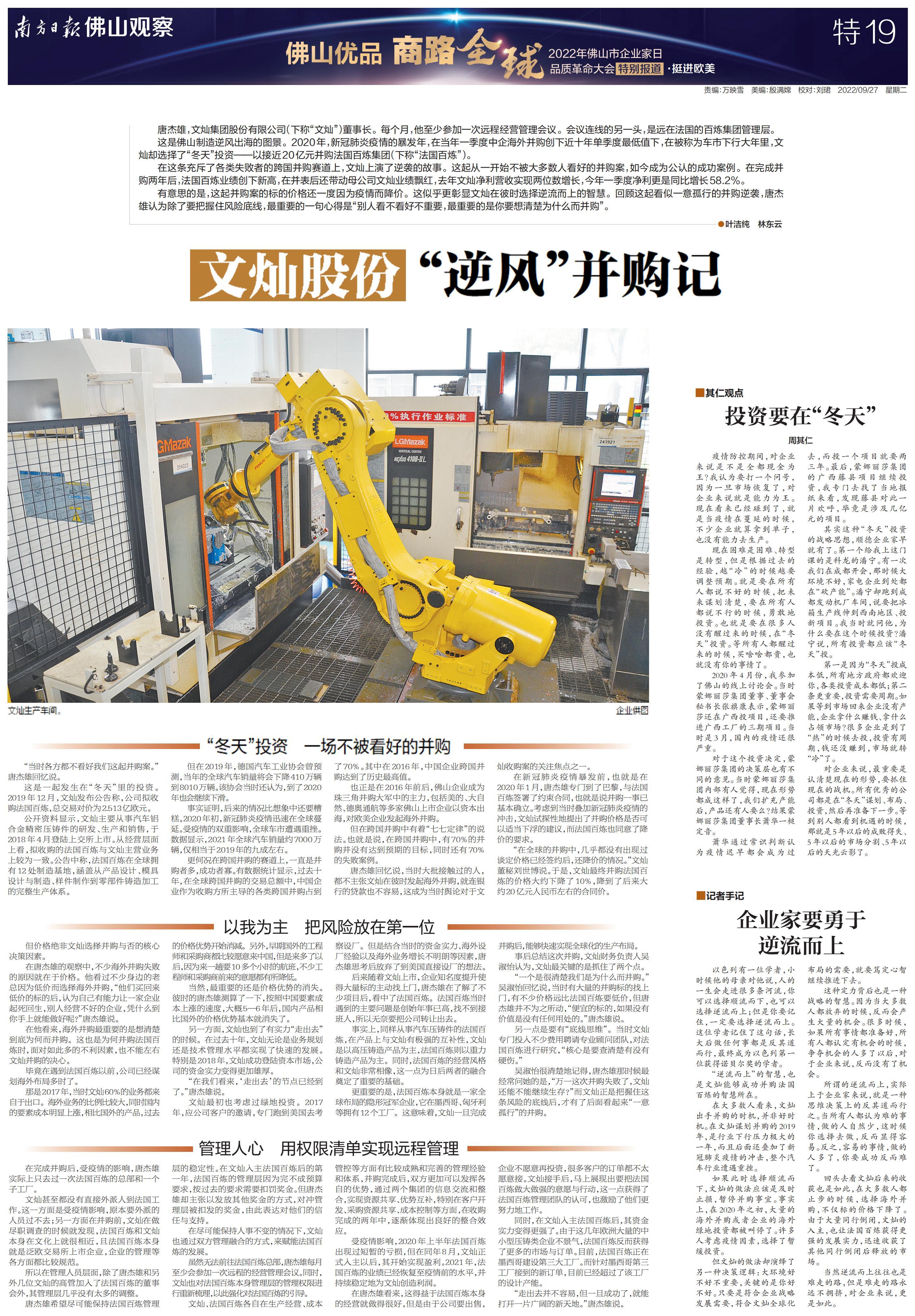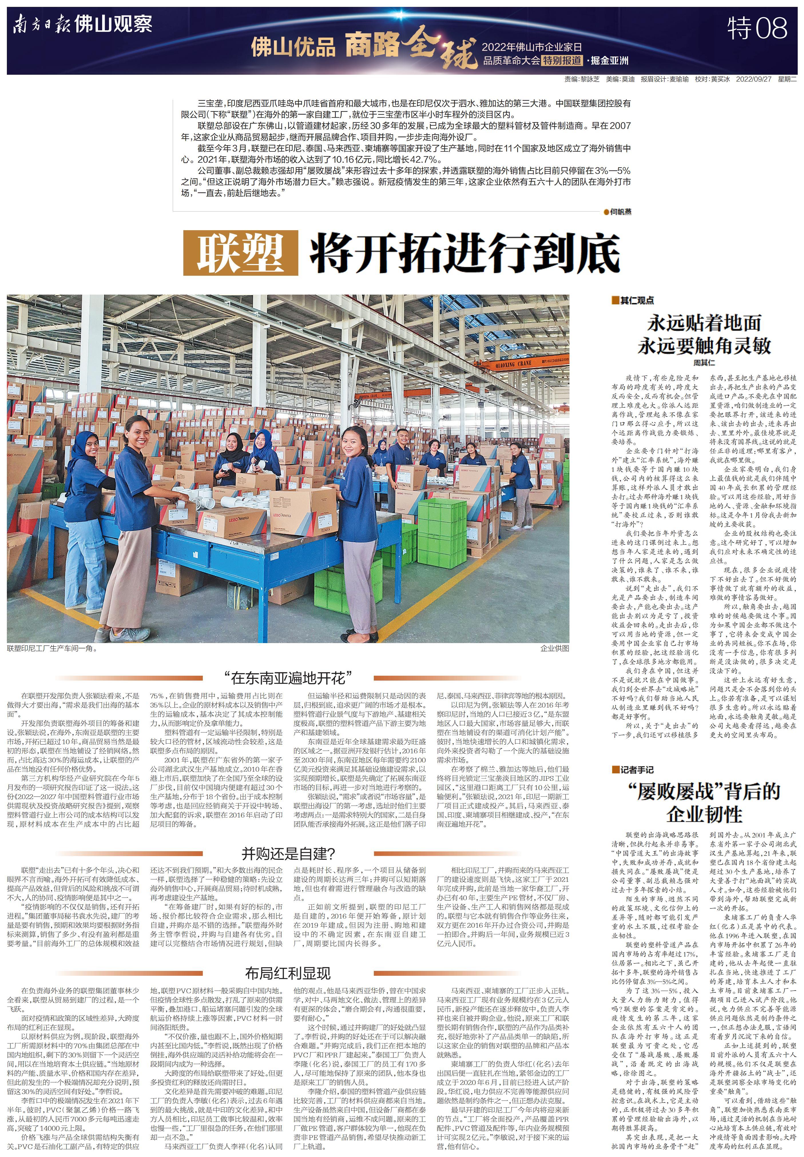 南方日报全程记录,并集结调研成果推出《“佛山优品 商路全球”2022年佛山市企业家日品质革命大会特别报道》特刊,立足佛山,为中国制造融入“双循环”新发展格局探索有效路径。以下为本次特刊全部36个版的报道。