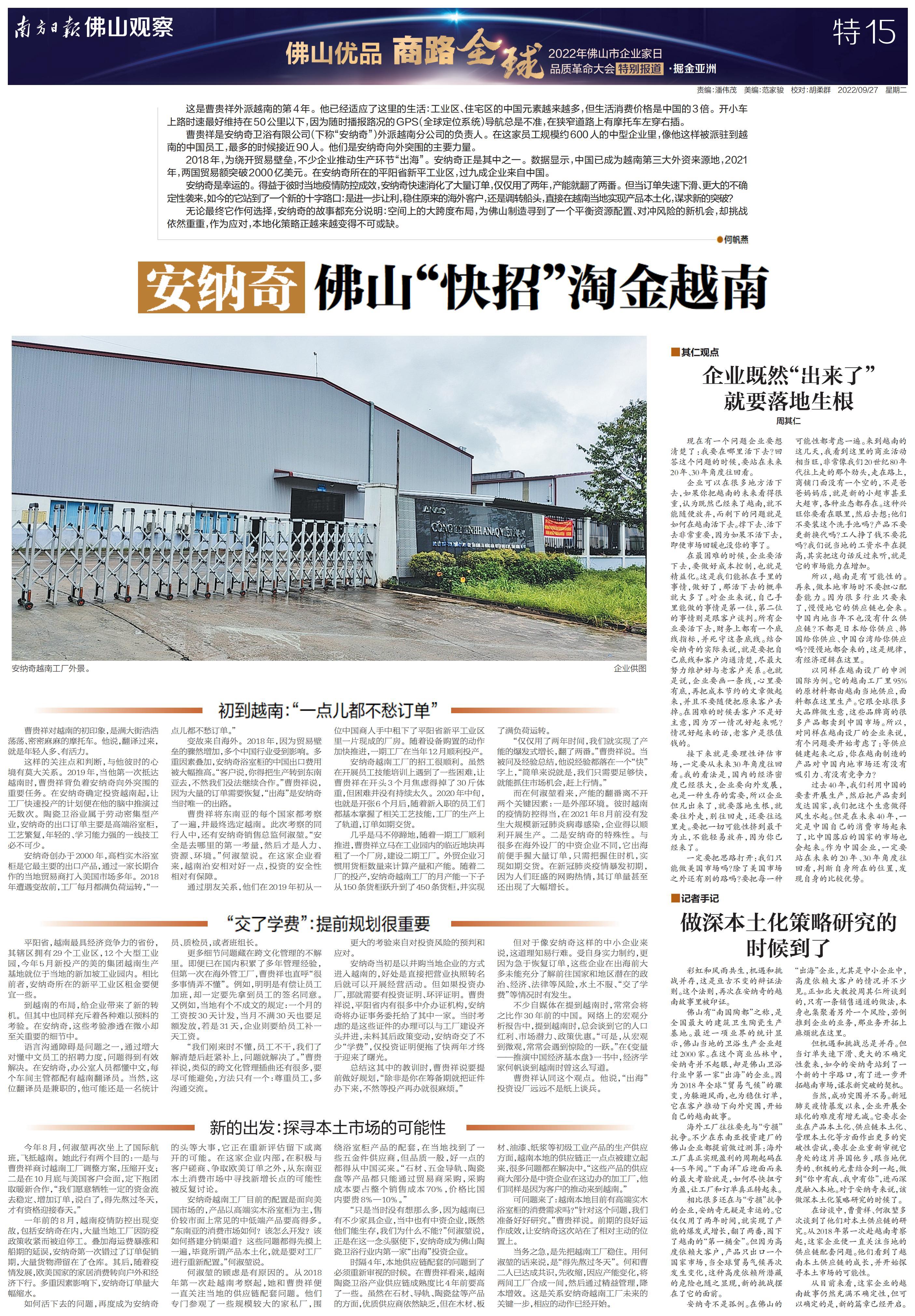 安纳奇:佛山“快招”淘金越南