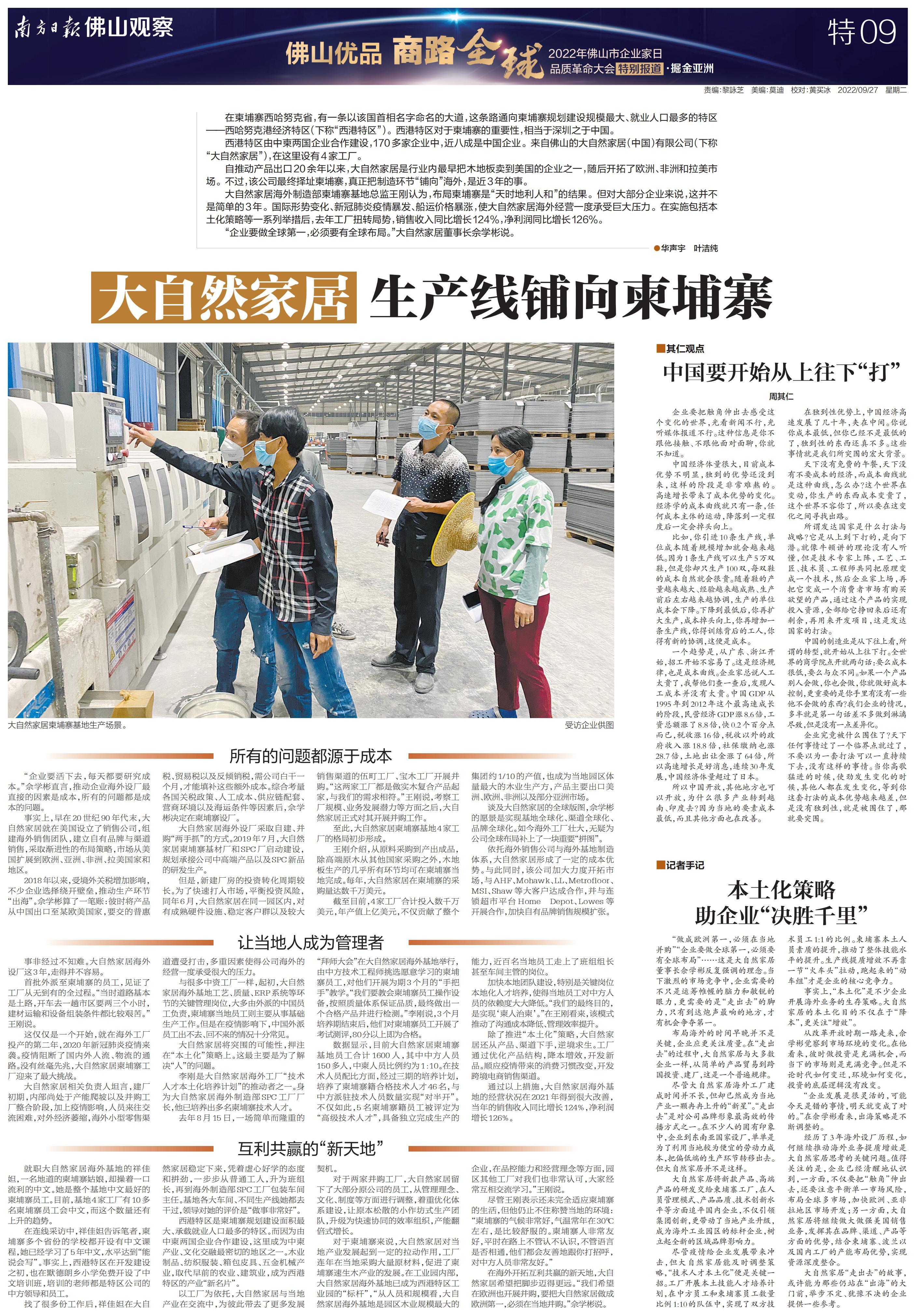 大自然家居:生产线铺向柬埔寨