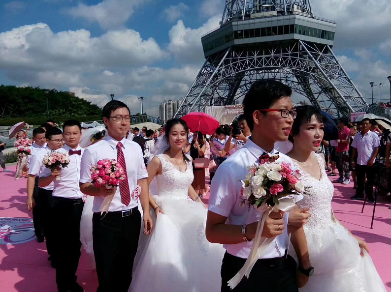 “我们结婚啦!”9月29日上午,佛山文华公园市民广场内,来自佛山各行业的99对职工新人许下了爱的誓言。这是“囍爱佛山·共建家园”2017年佛山市第五届职工集体婚礼上的一幕,佛山市委常委、常务副市长蔡家华当起了证婚人。
