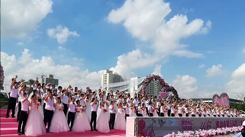 今年是佛山市职工集体婚礼举办的第五年。作为佛山市工会品牌服务职工项目之一,本届集体婚礼系列活动从6月26日开始启动,开展了《幸福花开》、《情定佛山》、《天赐良缘》三大板块的主题活动,聚焦为佛山发展做贡献的城市建设者们。