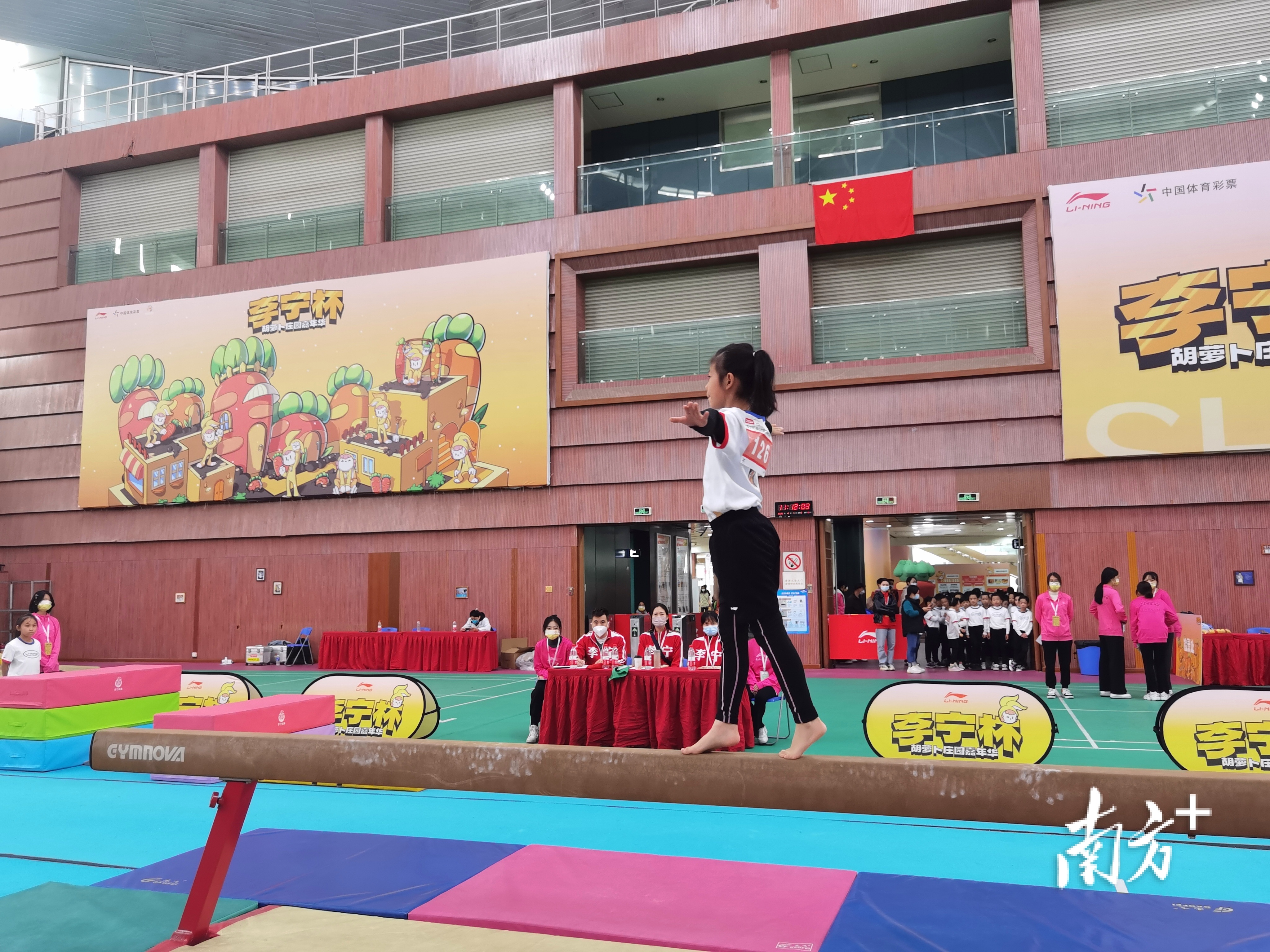 与去年的赛事相比,本届比赛还有一大亮点,即打造了“李宁杯·胡萝卜庄园嘉年华”。这是一个亲子赛事游园会,小朋友们不仅能在现场玩有趣的游戏,还能参加体操体验课。