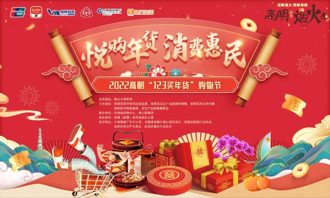2022高明“123买年货”购物节正在进行中,本次购物节以“买年货”为主线,在时间上连接元旦、春节两大节日,联动全区零售、餐饮、汽车、家电、旅游景区等行业企业及相关金融机构、电商平台,通过折扣优惠、满额送、限时购、金融支持等方式,营造政府搭台、行业联动、商家促销的消费氛围,为市民群众购物、消费送实惠。