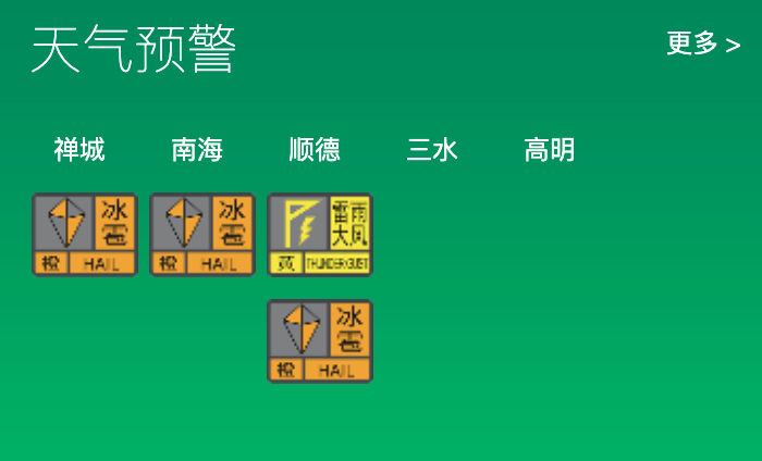 ◎南海桂城、顺德陈村发布冰雹橙色预警信号