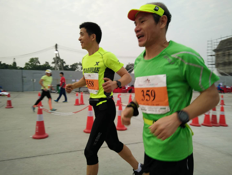 5日7时多,选手一起奔跑,相互打气。