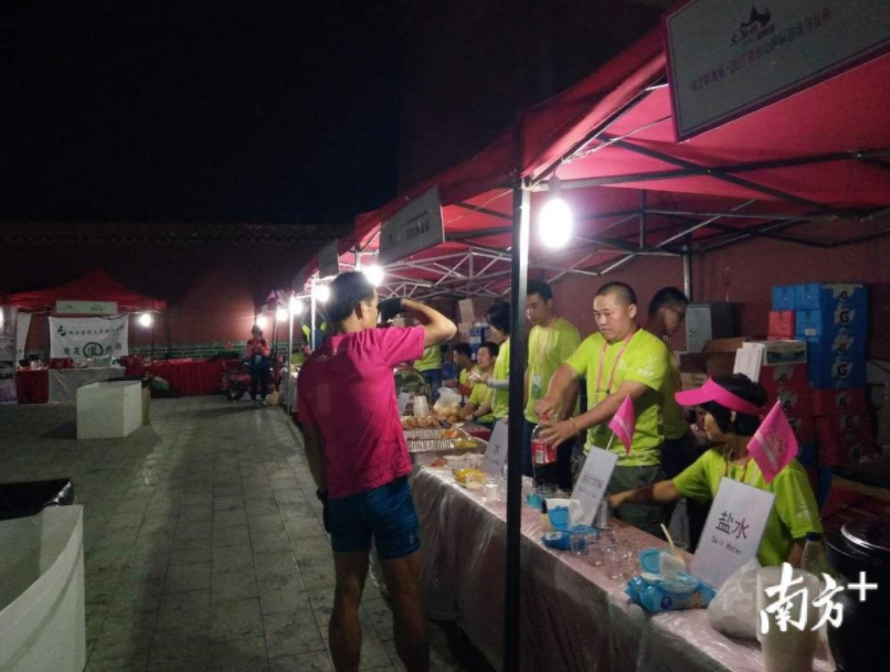 4日晚上,坚守在食物补给站的选手,为现场选手们提供能量。