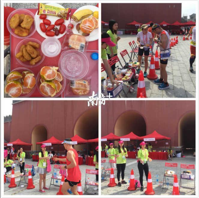 天气晴朗,中午的日头有点晒,但参赛者仍在不断跑跑跑~志愿者们也随时准备给跑友们递上水和食物。