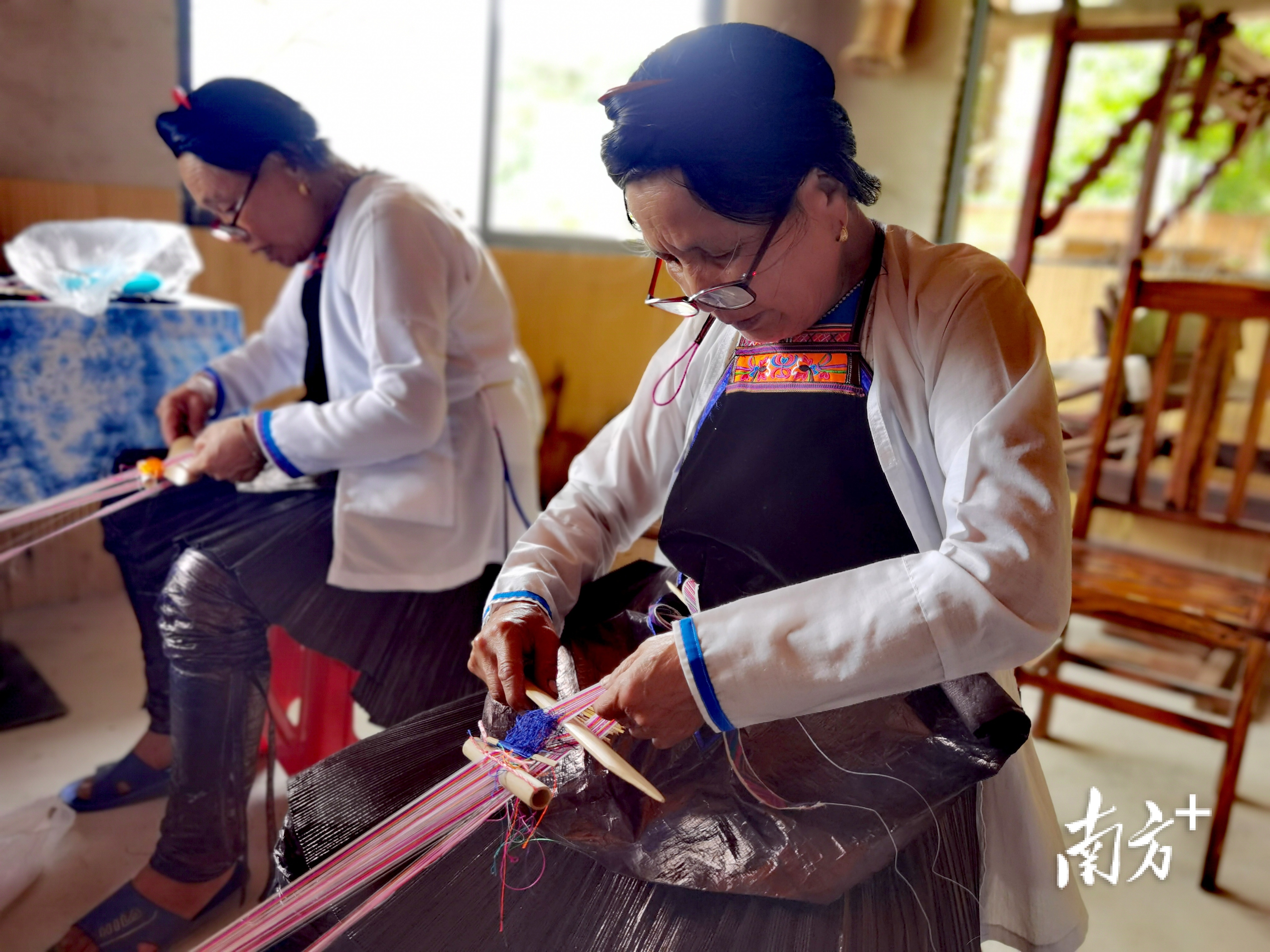 绣娘们边唱歌边刺绣。 南方+ 刘明 拍摄
