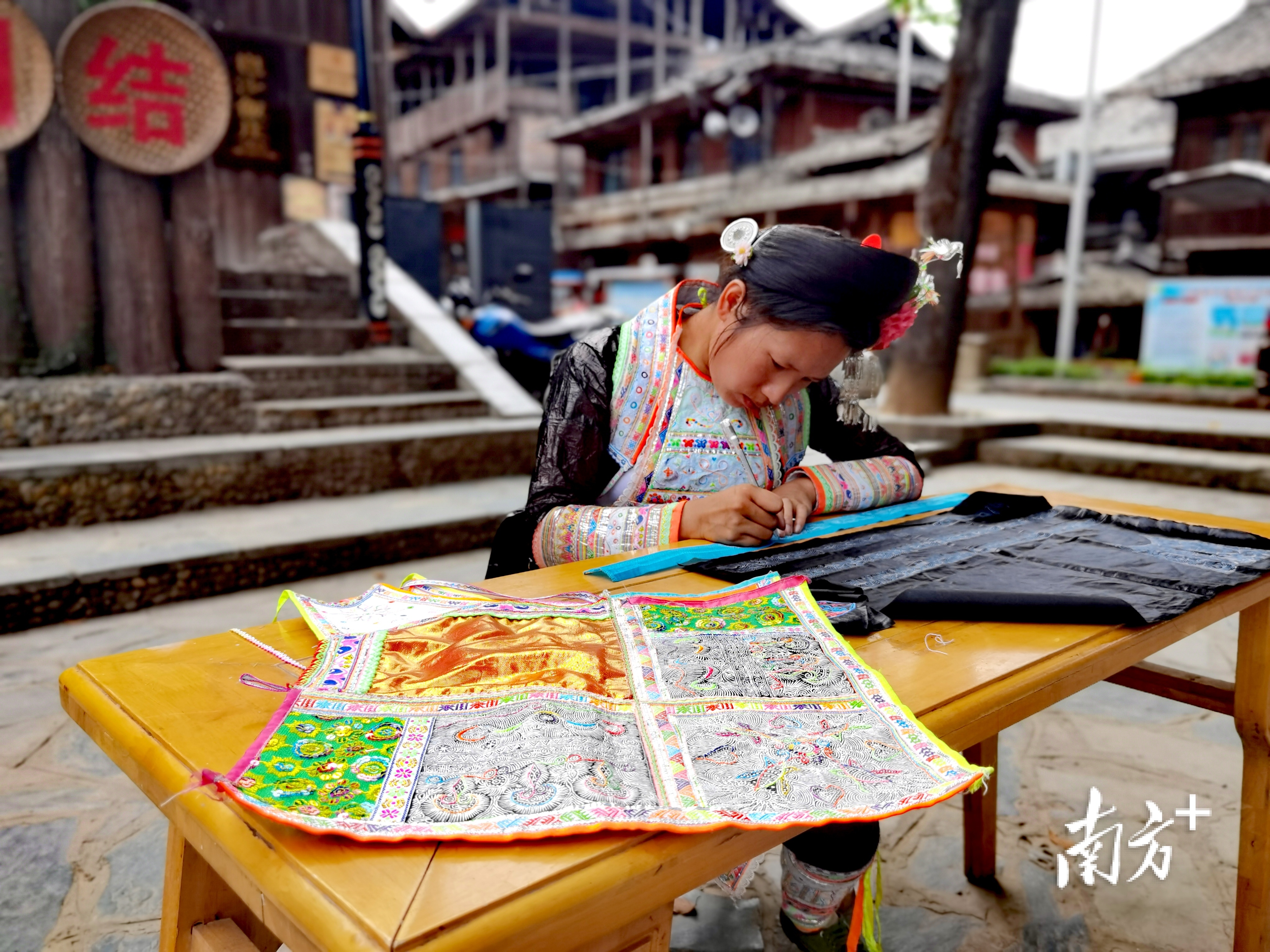 岜沙苗寨人正在制作传统服饰。 南方+ 刘明 拍摄