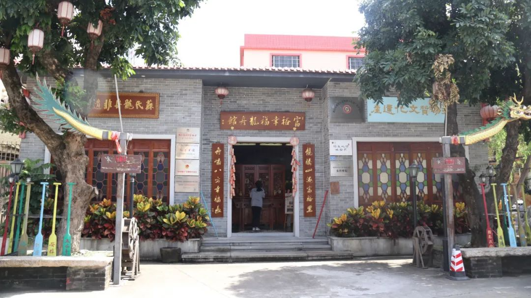 富裕幸福龙舟馆坐落于勒流街道富裕西村,主体建筑青砖红瓦,面积约300平方米,周围附属设施面积约888平方米。该龙舟馆秉承发扬中华传统文化精髓之理念,完美结合传统手工和现代工艺,设计制作与众不同的创意工艺品。