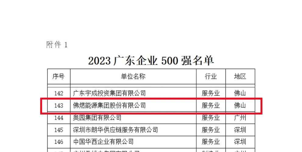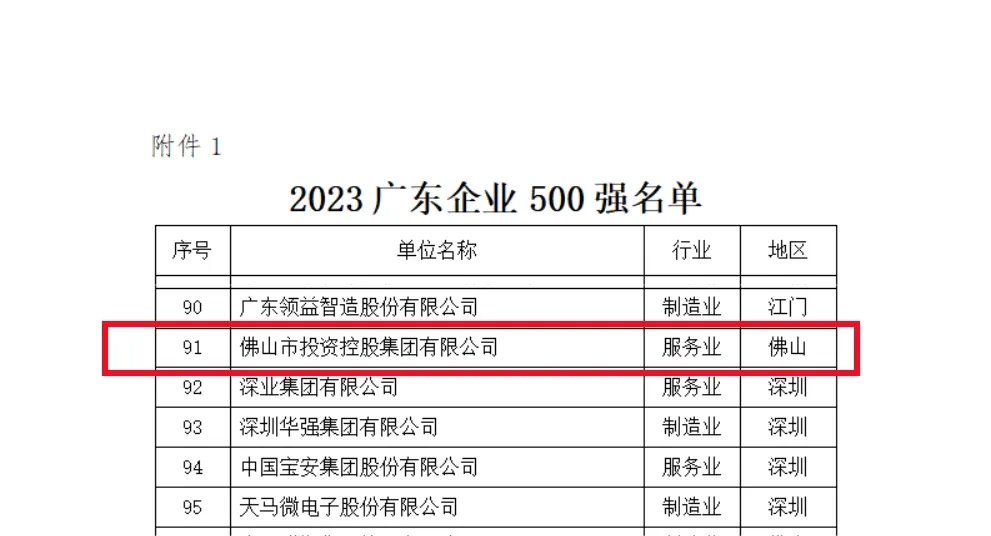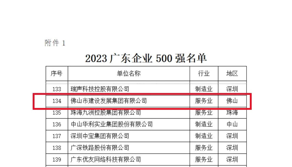 记者从佛山国资委获悉,日前,由广东省企业联合会、广东省企业家协会主办的2023广东500强企业发展大会在广州举行,大会发布了广东企业500强和广东民营企业、制造业企业、服务业企业100强榜单。佛山3家市属企业榜上有名。
