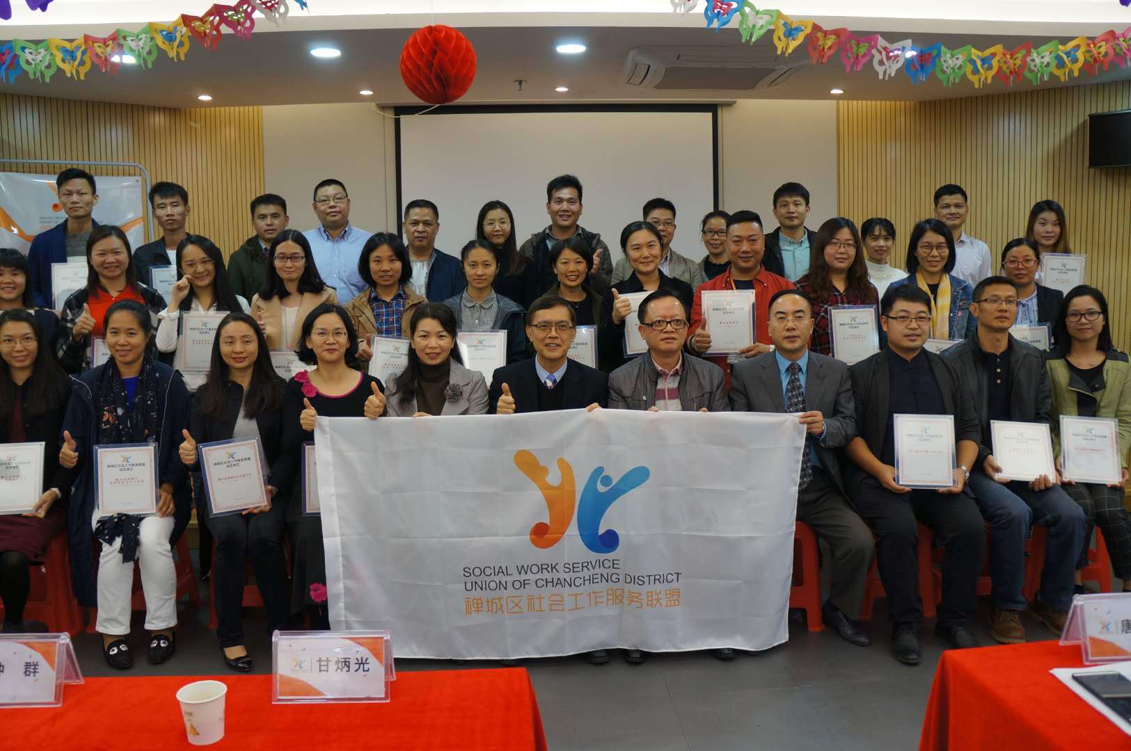 禅城区社会工作服务联盟是一个跨领域、跨部门、跨行业的合作体,凝聚了禅城区内所有社会工作服务资源。 该联盟在今年9月正式成立,第一批联盟会员有政府部门、新闻媒体单位、高校学院、社工机构等将近40个单位加入,12月6日下午,由禅城区民政局主办的“禅城区社会工作服务联盟”第一次联席会议暨社会服务研讨会,在祖庙街道微服务中心隆重举行。禅城区有关部门、各镇街社工局的领导、佛山科学技术学院、在禅城服务的社工机构代表及特邀嘉宾、媒体代表等共约50人出席了会议。