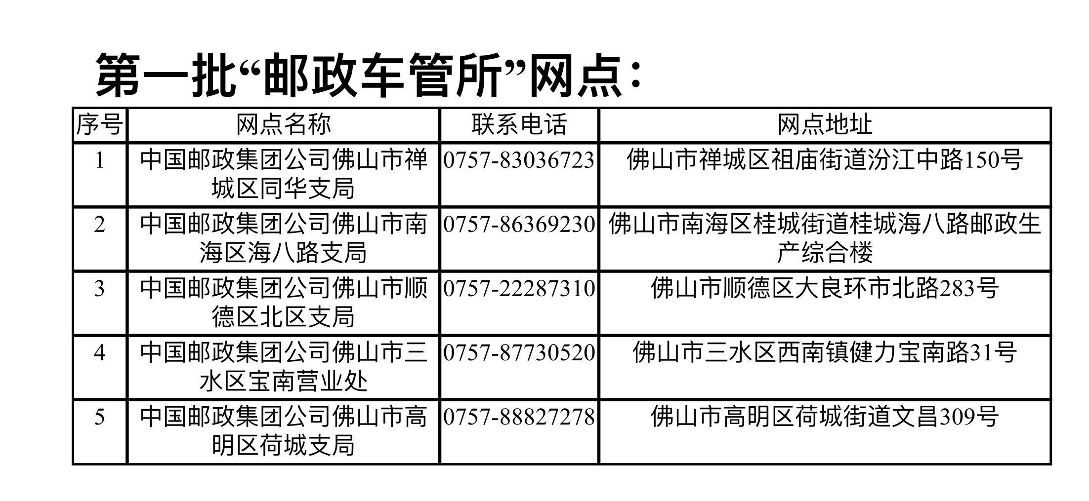 据了解,为了方便群众办事,拓展车管服务渠道,更好地满足群众多元化的办事需求,1月2日起,市公安局交警支队与佛山邮政进一步深化合作,依托全市邮政网点设立交警便民服务窗口,八大类20多项车驾管业务均可办理。