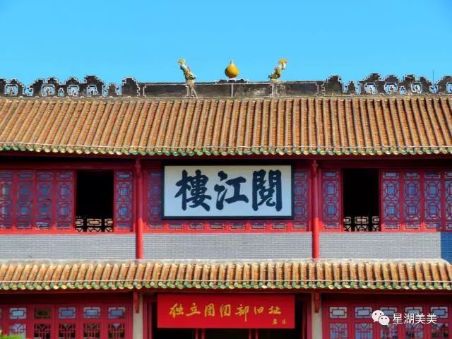 南楼檐下悬挂两广总督劳崇光所书的“阅江楼”木匾和朱德元帅题写的“独立团团部旧址”匾额。