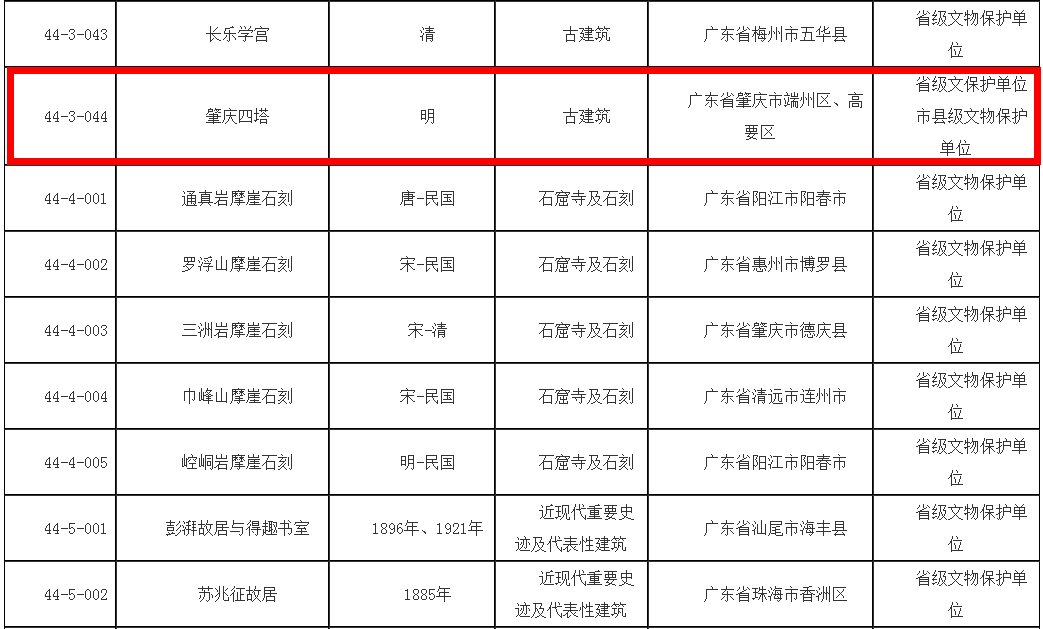咱们端州共有4处古迹榜上有名