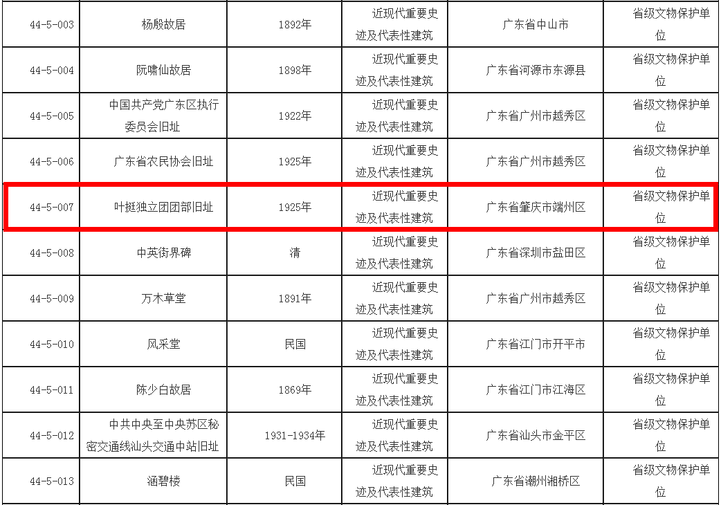 4. 叶挺独立团团部旧址(肇庆市端州区)。