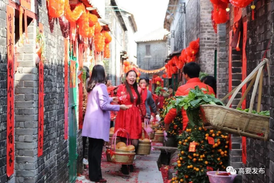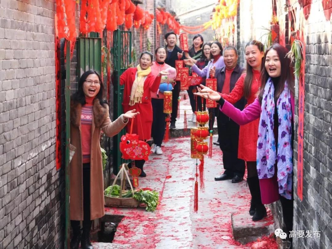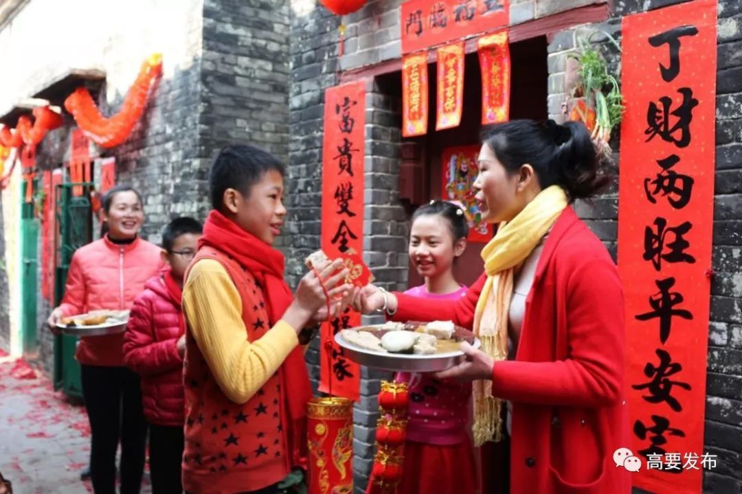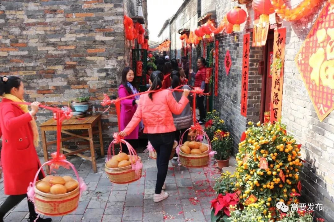 醒狮拜年采青、村民煮裹蒸、分享茶果美食,有亲戚携家带口来探亲、外嫁女担茶果回婆家等等,全面体现了我们高要区黎槎八卦村人民群众邻里和谐、热情好客、热闹喜庆、幸福祥和的春节文化元素。