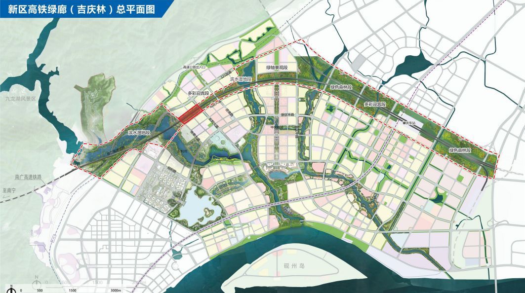 肇庆新区高铁绿廊沿着高铁两侧布局