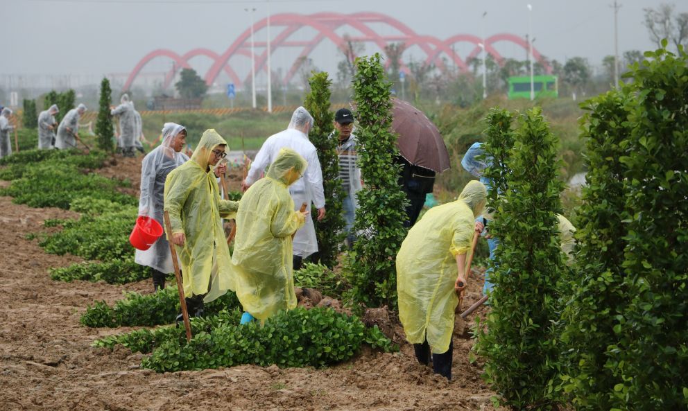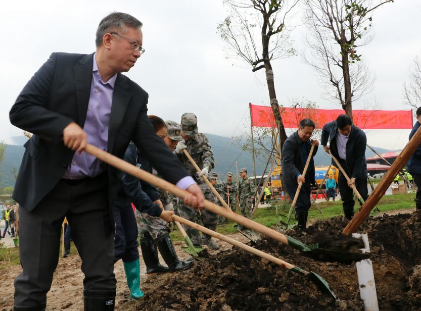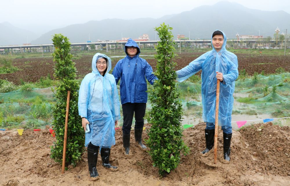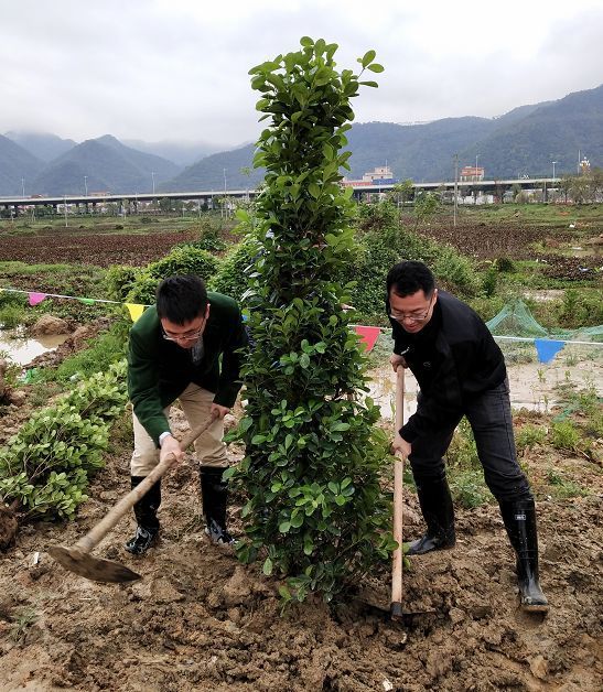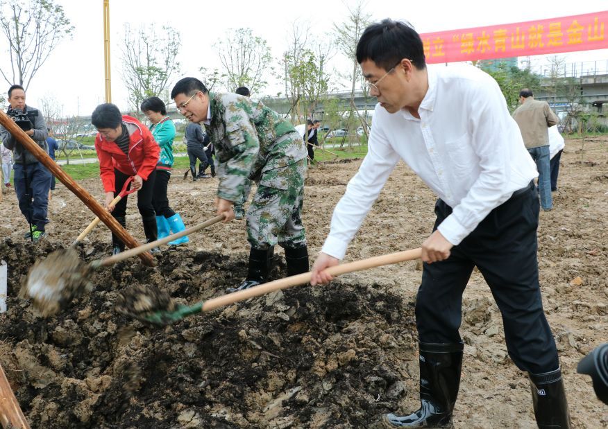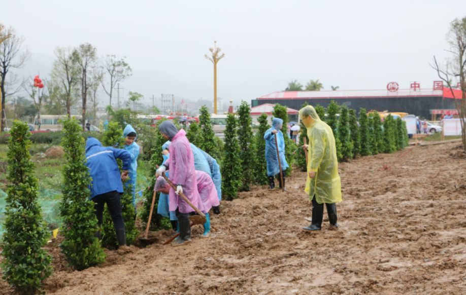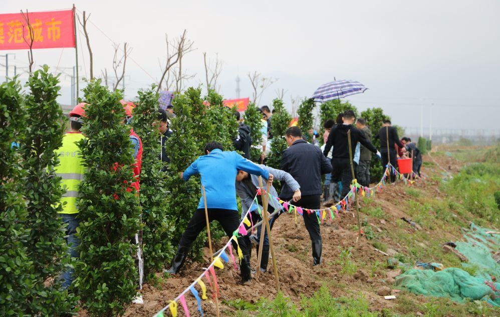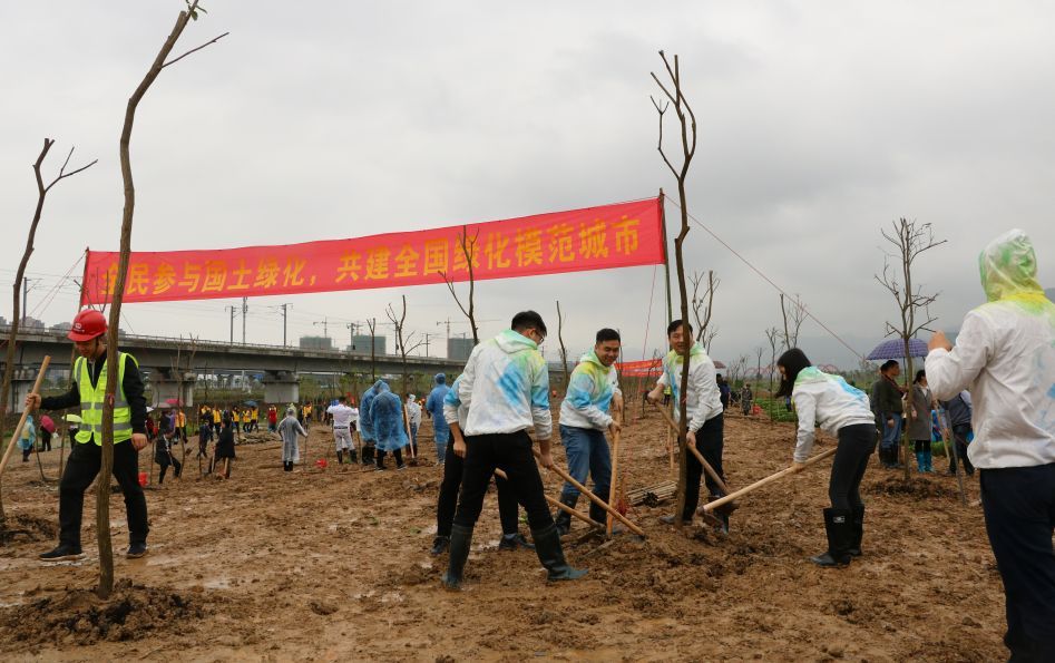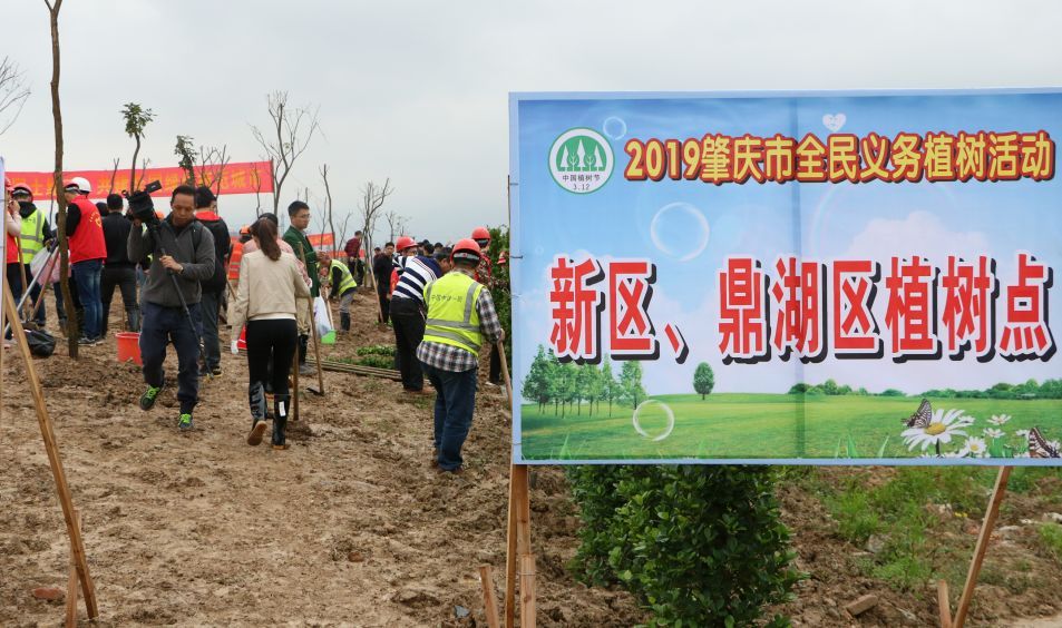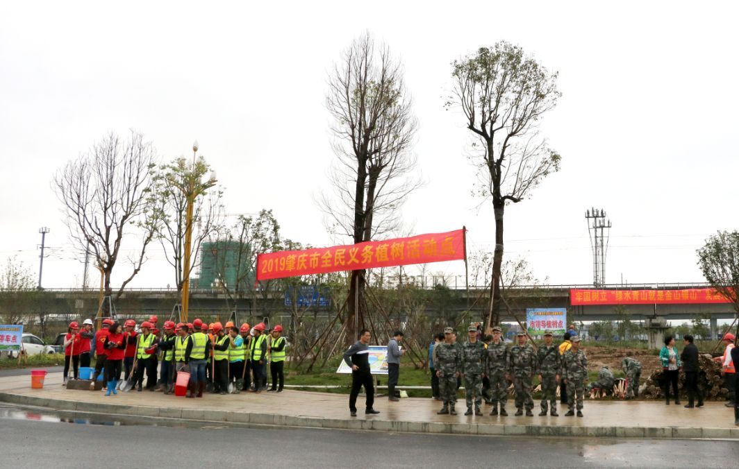当天,市委、市人大常委会、市政府、市政协领导班子成员,与市委各部委、市直各单位、肇庆新区、市各人民团体、省驻肇单位的干部以及驻肇解放军部队、武警肇庆支队官兵、义务植树志愿者等400多人,冒雨在肇庆新区南广铁路旁的公共绿地植树,一起为精心打造绿色新区、建设“森林之都•美丽肇庆”植绿播绿。