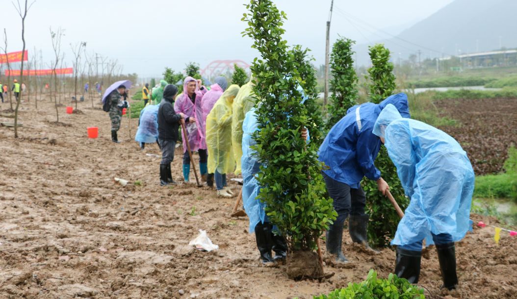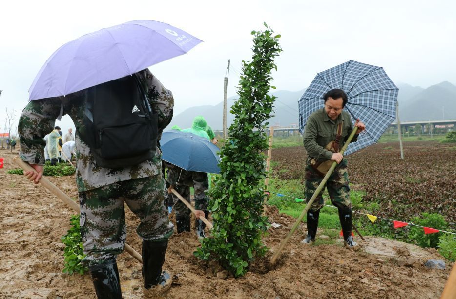 雨中植树忙,吉庆林添绿装!