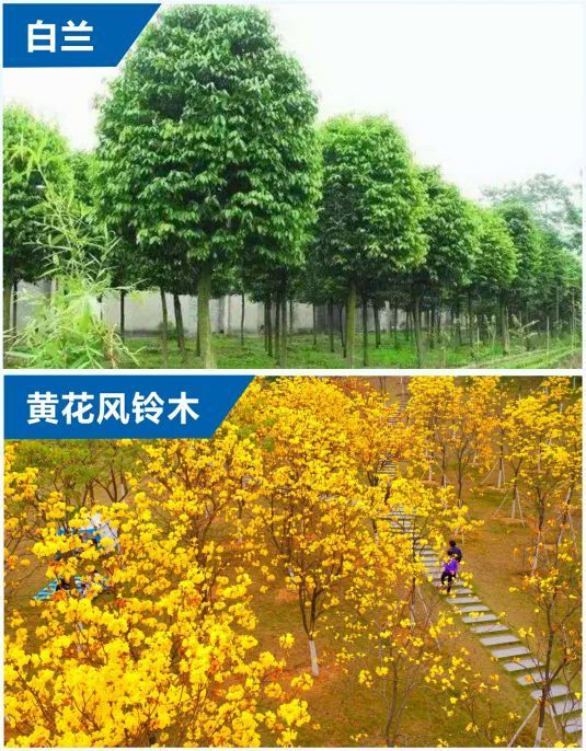 黄花风铃木、桂花、白玉兰、金钱榕等树苗