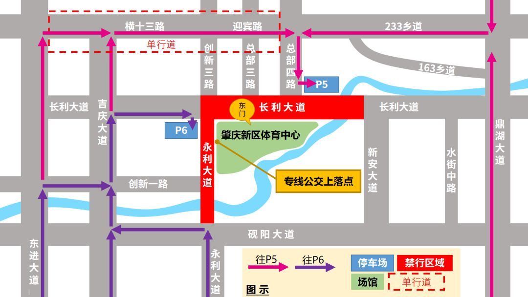 六、活动期间,新区体育中心附近道路将会实行交通管制,部分路段可能会产生拥堵,请您依照现场交警部门的指引,文明礼貌出行。