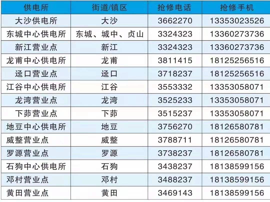 最后,附上各供电所的抢修电话