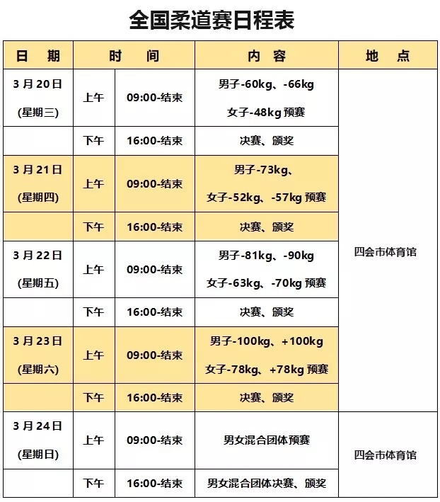 今天下午16:00将进行男子-60kg、-66kg,女子-48kg三个级别的决赛,届时诞生三个级别的冠亚军。