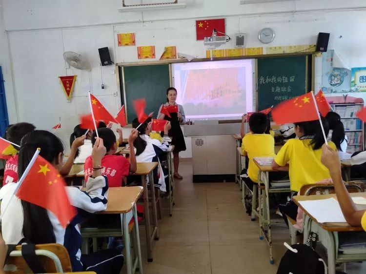 大沙镇岗美小学各班举行爱国主题班会,对学生进行爱国主义思想教育。