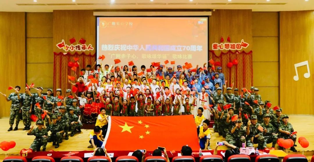 日前,四会市广附实验学校在该校音乐厅举行了“广附赤子心,歌咏颂华诞”庆国庆歌咏比赛,声声凯歌告白祖国母亲。
