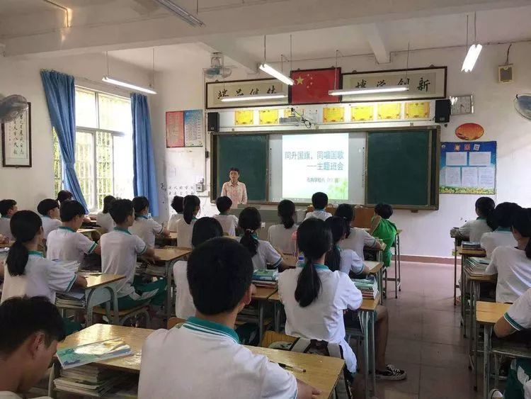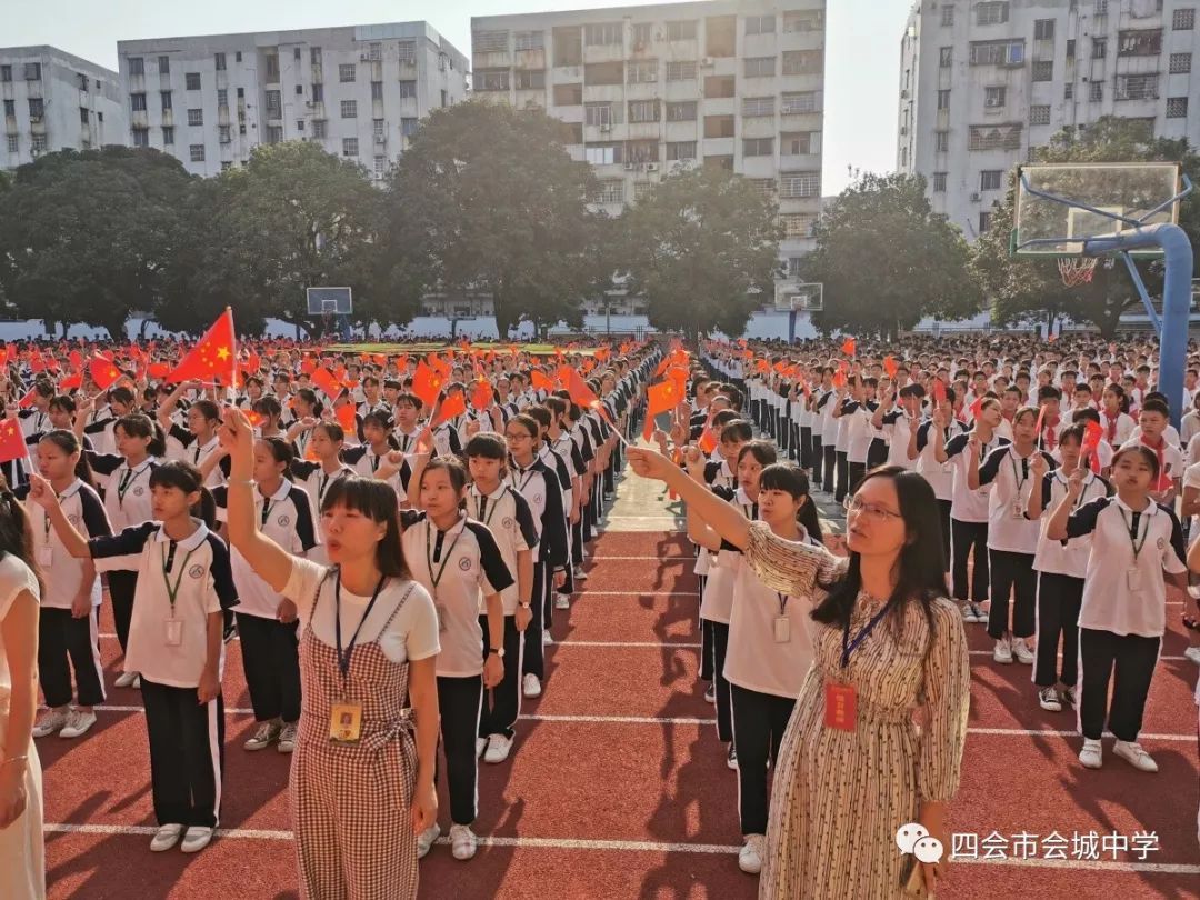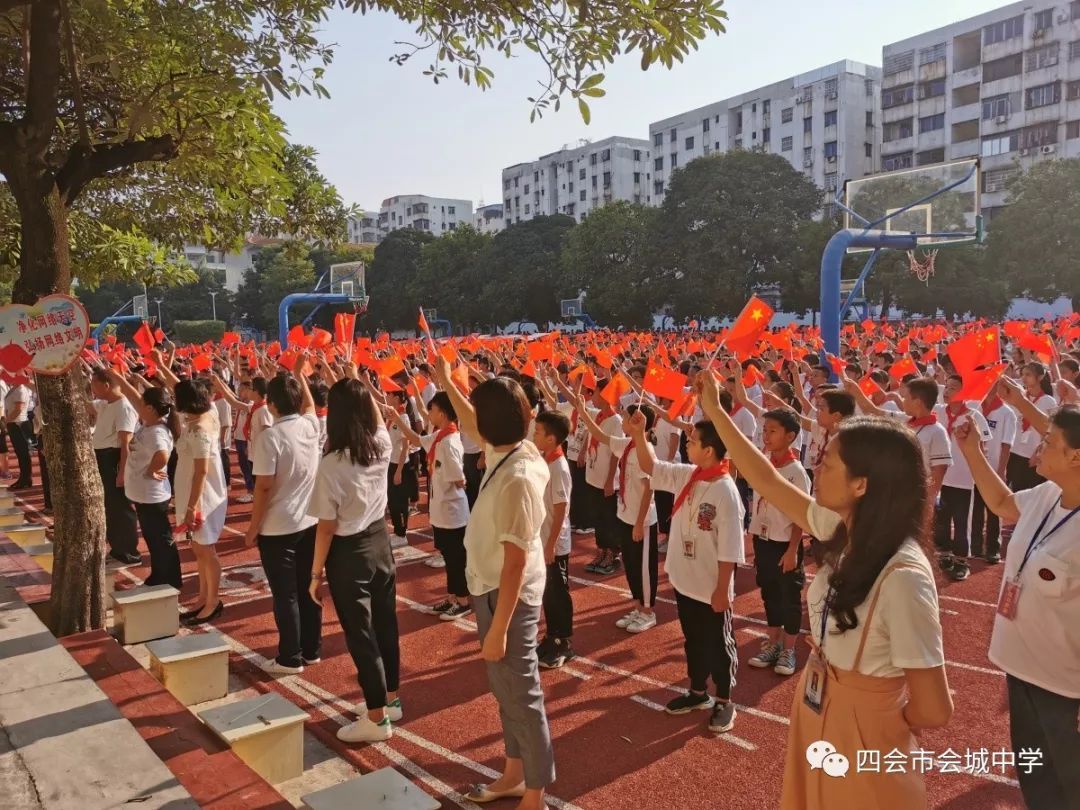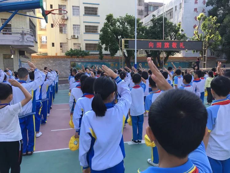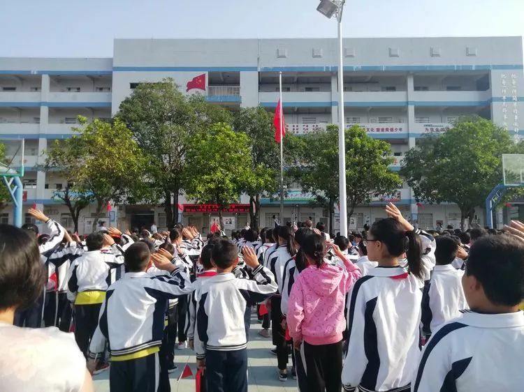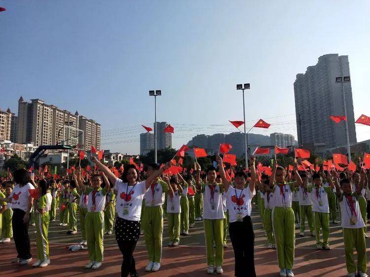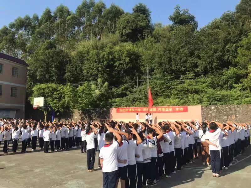 为迎接国庆,加强对学生的爱国主义教育,进一步增强学生的民族自豪感和自信心,四会市各学校举行了“同升国旗 同唱国歌”活动。
