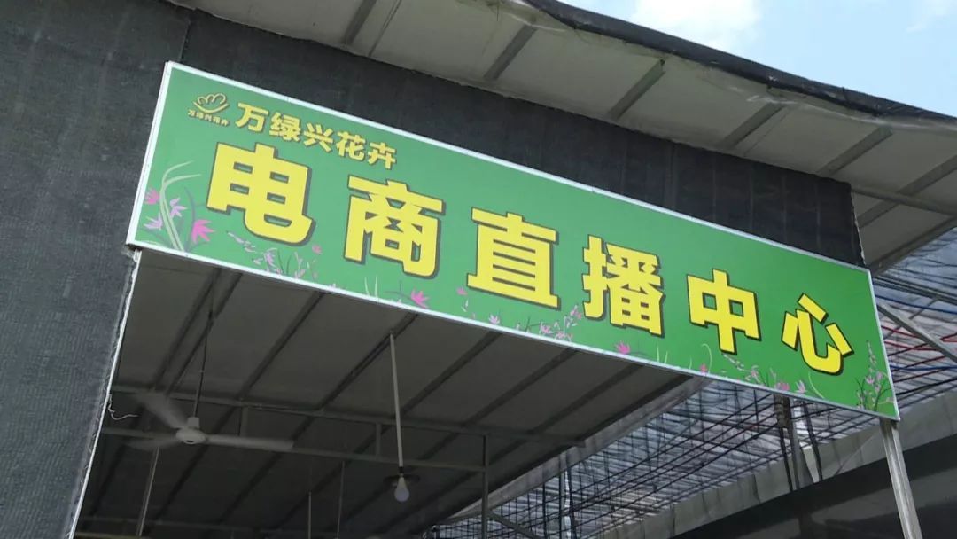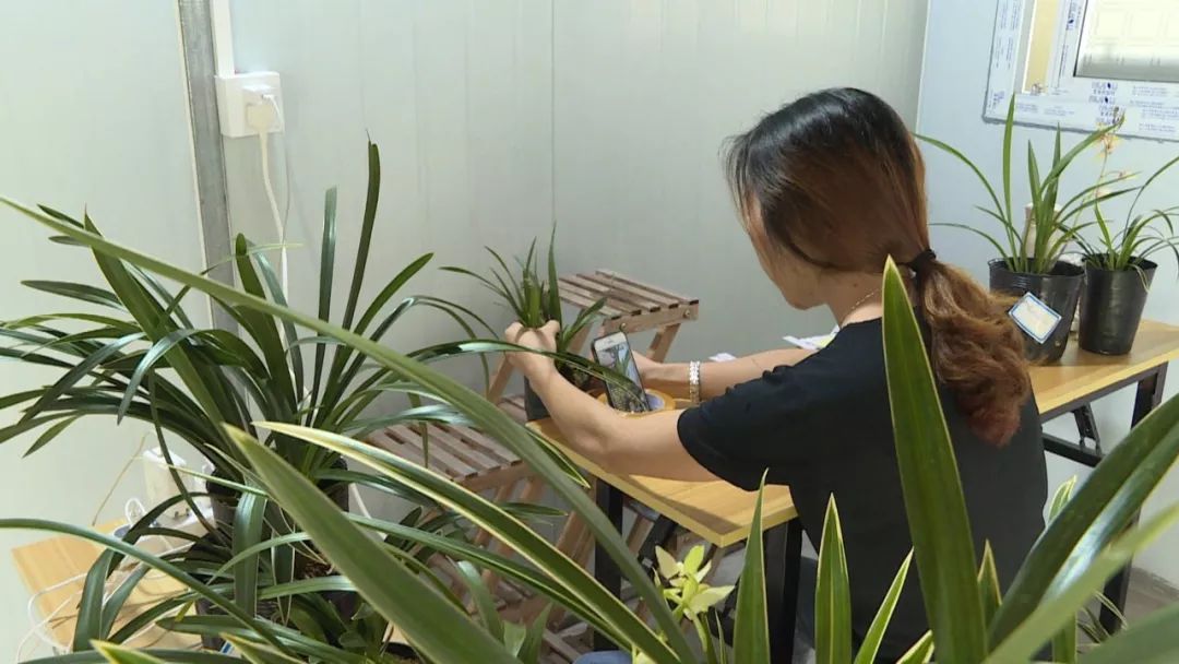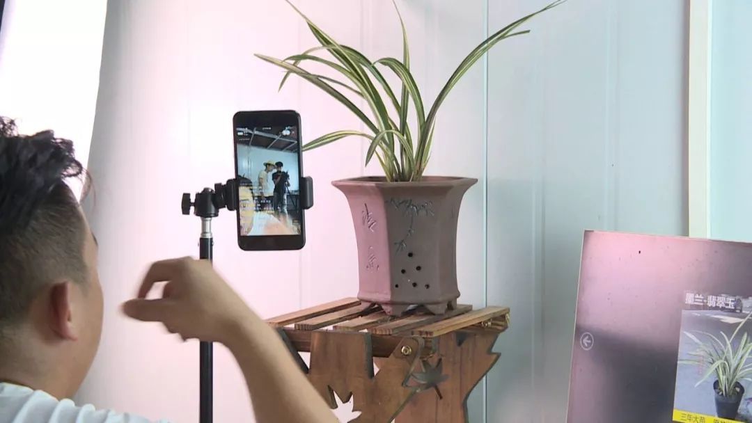 ▲工作人员通过手机直播销售兰花