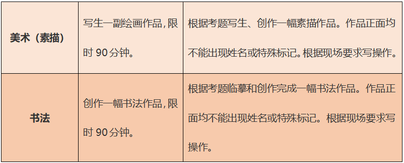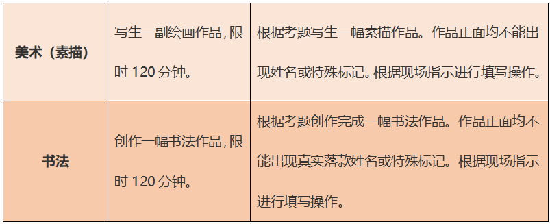 ①美术专业术科初试考试科目为:素描,主要考察学生写实能力和创意意识。