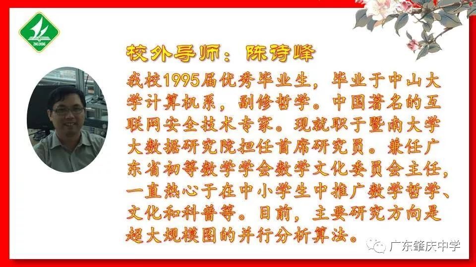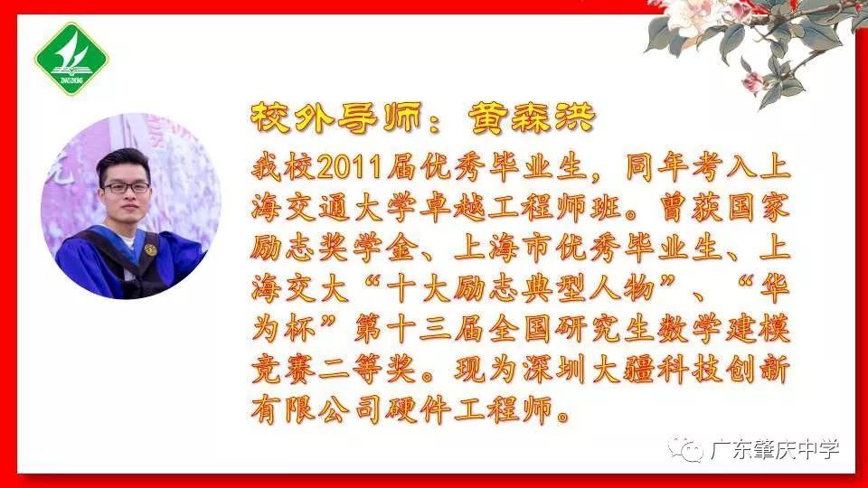 考上直升班,我们将有幸成为首届雄才班的学员,可与一大批优秀专家、导师为伍,与最先进的思想进行碰撞、交流、对话,找到适合自己的人生目标,形成更高更大的人生格局。雄才班的总导师是我校向国庆副校长(正高级教师,特级教师,南粤优秀教师,肇庆市首批名教师),聘请了中科院研究员葛子义教授,信息技术正高级教师、特级教师、国际奥赛中国队教练、享受国务院特殊津贴的黄国洪专家,肇庆市中华优秀传统文化督学唐文明老师,中国著名的互联网安全技术专家、暨南大学数据研究院首席研究员陈诗峰校友,曾获国家大志奖学金、上海市优秀毕业生、现任深圳大疆科技创新有限公司硬件工程师的黄森洪校友担任雄才班校外导师。另外还有来自美国芝加哥的英语口语助教Sophia老师助阵!