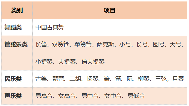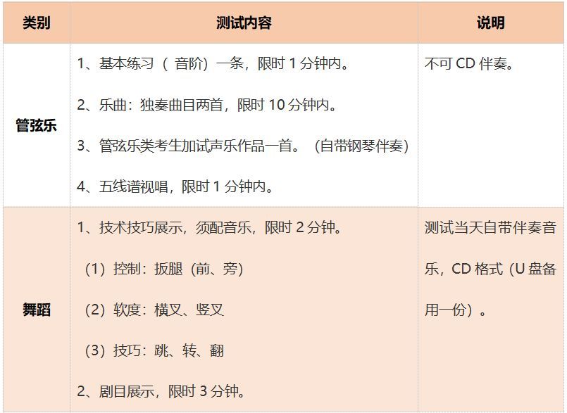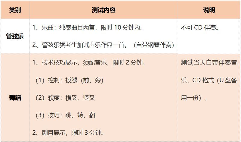 b.考生自备乐器。舞蹈考生基本功测试自备体操服、软底鞋;剧目展示自备相符服装。