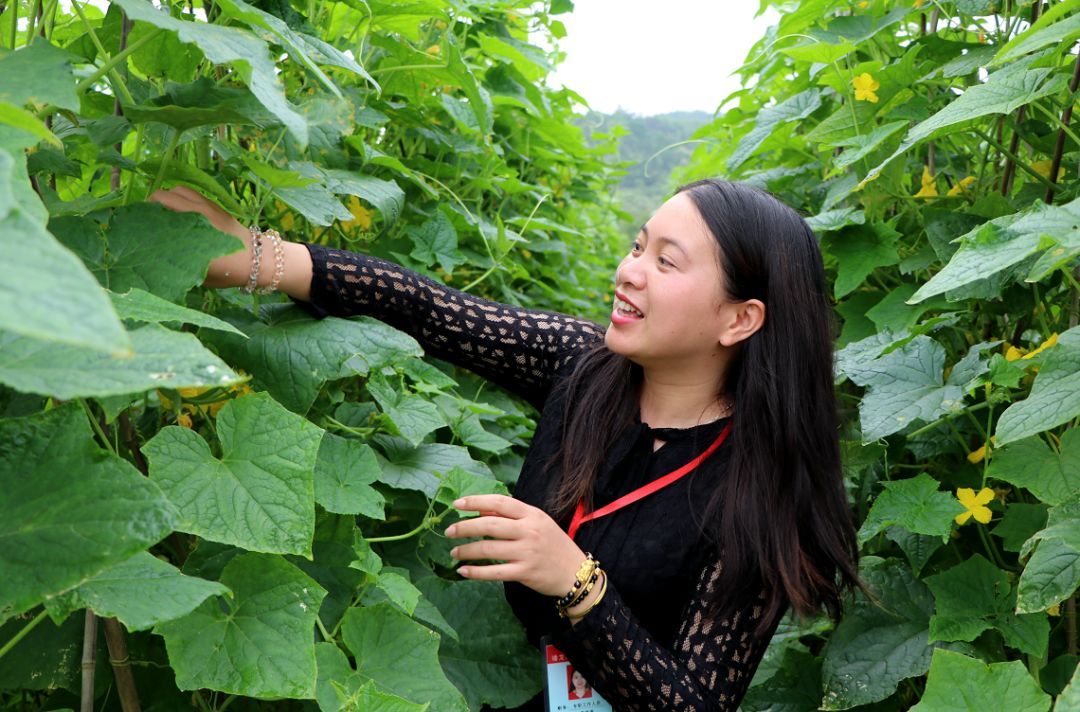 “我2013年在广州回来家乡,觉得黄瓜产业很有特色,特别是得到政府和扶贫单位的重视后,我和几个年轻小妹一起致力于黄瓜产业的种植销售推广。也算是为村民打开市场尽一点绵力吧。”李艳秀说。