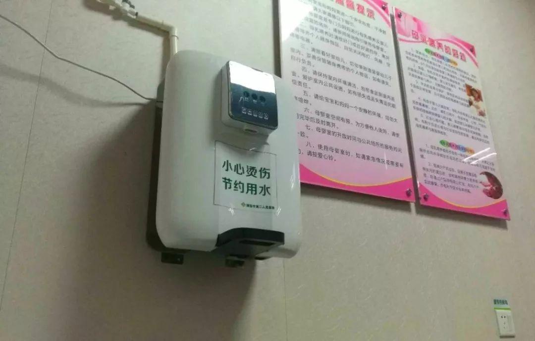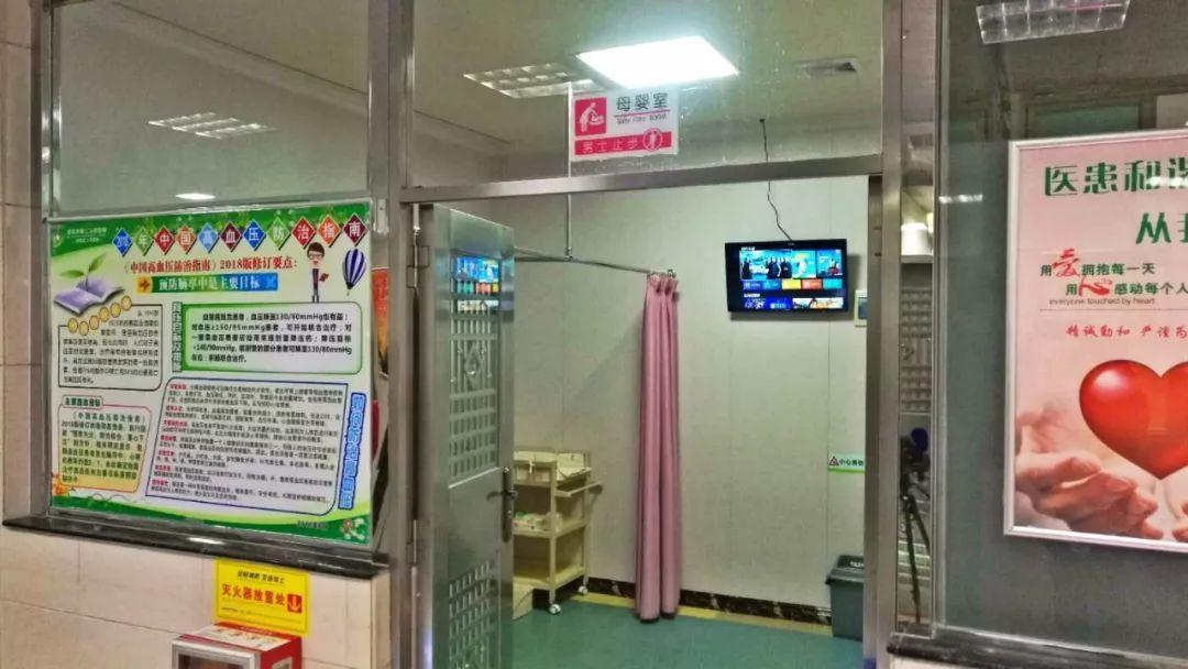 在市第二人民医院门诊楼1楼的公共母婴室里,配有换尿布台、热水机、壁挂电视机,还有供免费使用的纸巾、一次性杯子等物品。