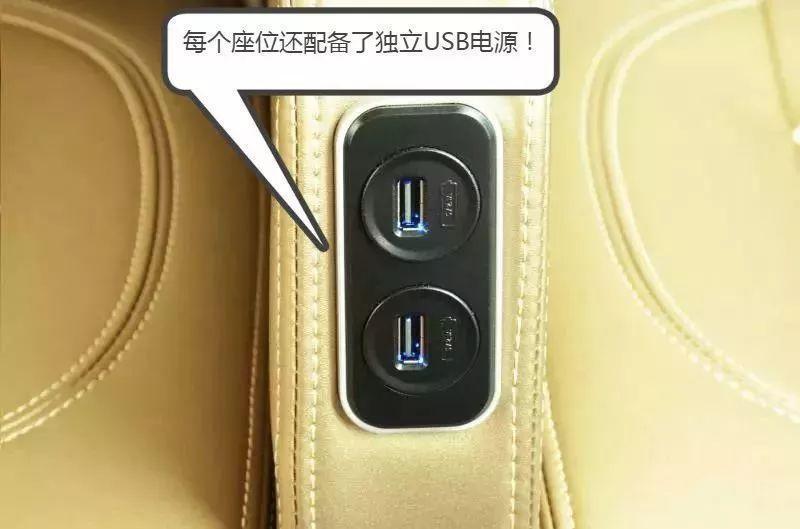 豪华商务车的亮点之一就是每个座位前面有两个USB,大家只要带上充电线,就可以在车上充电。