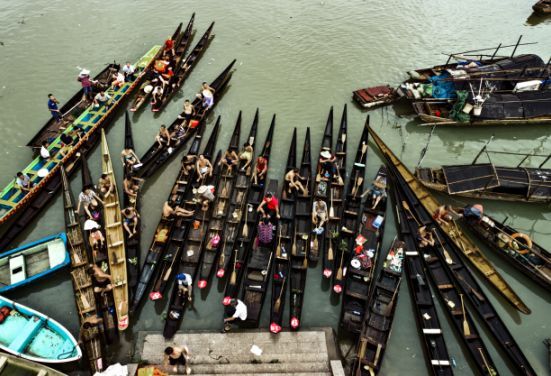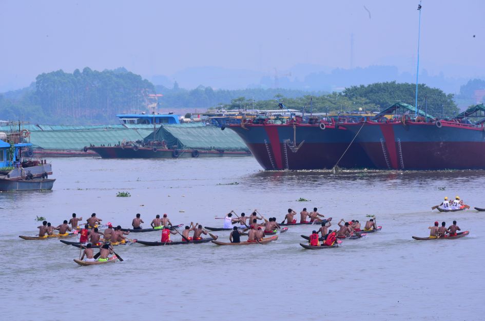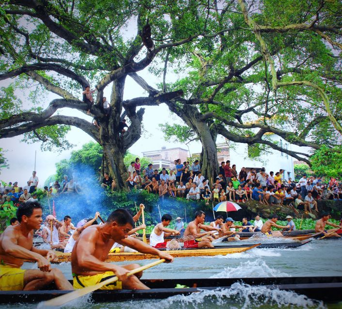 那些龙舟上强壮山塘汉子裸露在阳光下黝黑的膀子,那些岸边声势浩大的加油声,正卖力地展示着这座城镇传统水上运动的魅力。