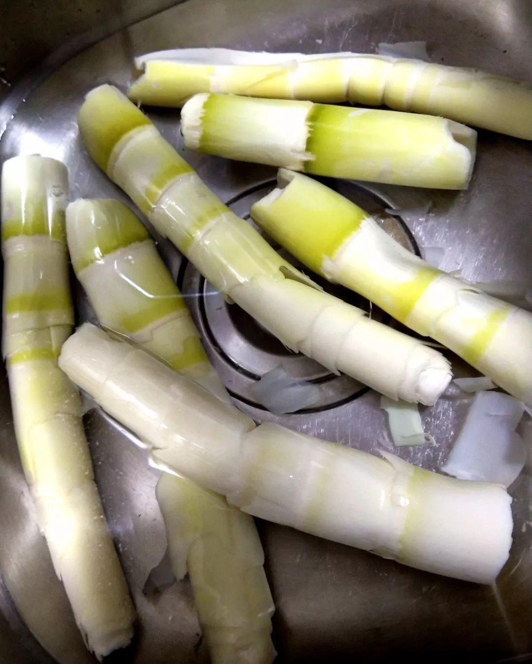 采摘好的苦笋要剥外壳,拿一把小刀,在苦笋上划开一条口子,再从口子上向两边剥就可以了!剥出来的苦笋白白嫩嫩的,一看就很有食欲!