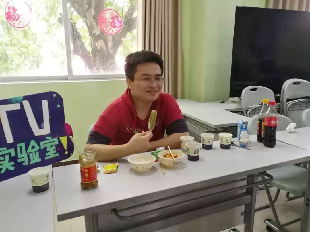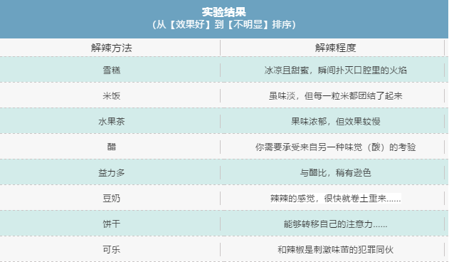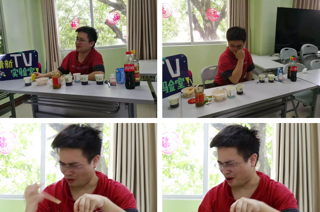 每次,小胖先吃下半勺辣椒,再吃下解辣的试验品,然后说出体会。时间越短,解辣能力越强。