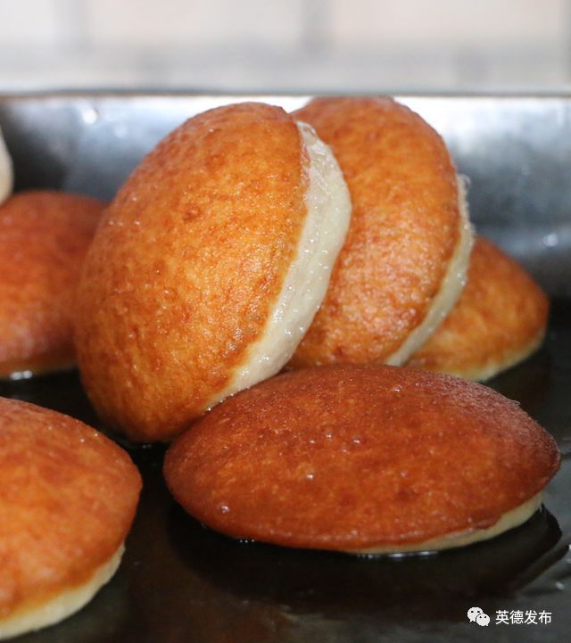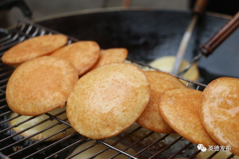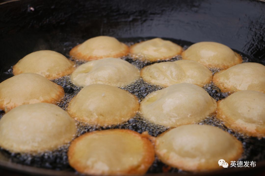 一眨眼的功夫,卜卜糍就鼓着胀胀的“肚皮”从锅底窜上油面来。待卜卜糍一面金黄,一面洁白,就可以从油锅中捞起来了,香脆美味,爽滑可口的卜卜糍就这么做好了。