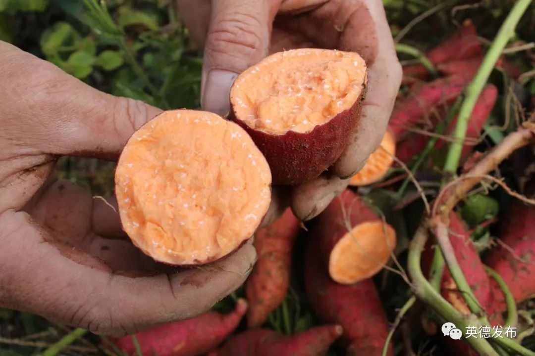 青塘镇建新村背山依水,撂荒地里的多彩番薯正值丰收的季节,“一点红”、“水晶红”、“西瓜红”将唤起你的“世外桃源”味蕾。这里山清水秀、阳光充足、昼夜温差较大,虫害很少、非常适合农作物生长;再加上有机肥原始耕种,零污染、零化肥、零农药,成就番薯地里的多彩世界、田园风爆棚。