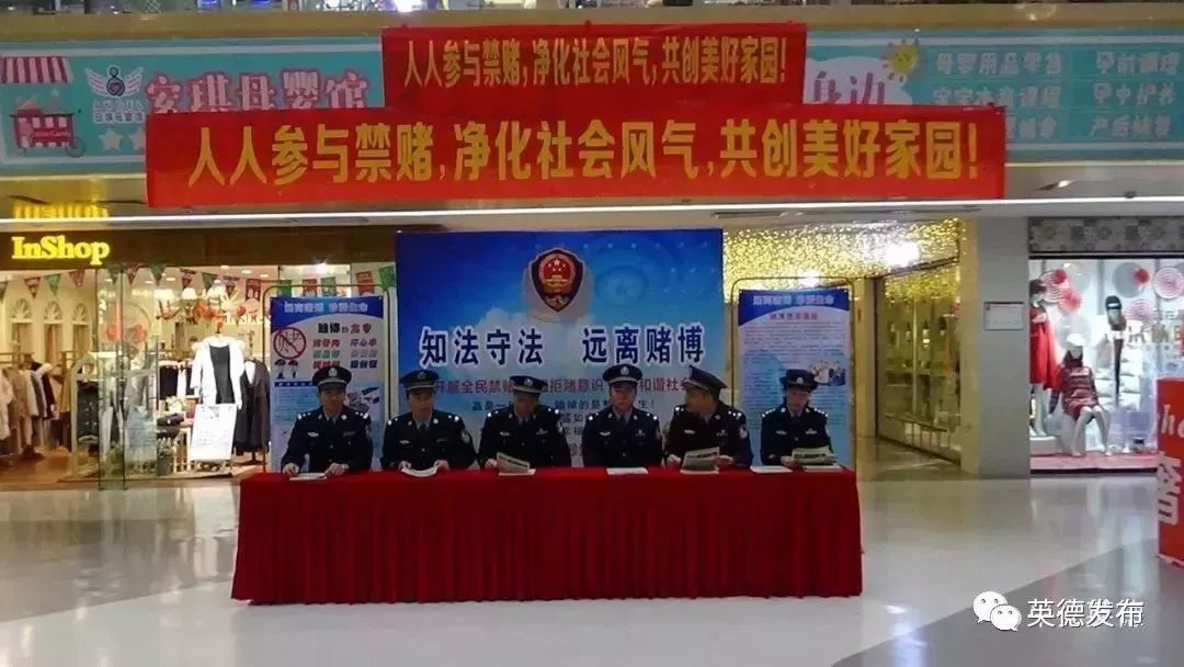 为贯彻落实公安部、省厅、清远市局关于开展以“知法守法,远离赌博”为主题的禁赌宣传月活动要求,持续高压查处打击涉黄赌违法犯罪活动,营造浓厚的全民禁赌法治宣传氛围,为广大市民营造一个平安、祥和的社会治安环境,近日,英德市公安局治安大队积极联合城中派出所在市区合地广场开展“知法守法,远离赌博”禁赌宣传活动,共派发禁赌宣传单张1000余份,受教育群众逾3000人次。