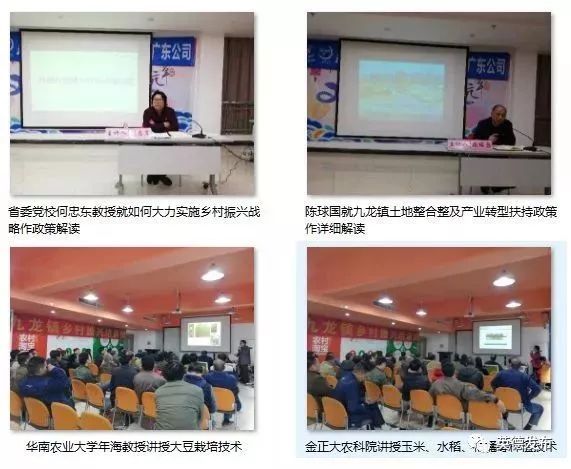 九龙镇党委政府高度重视此次培训班,特邀请了省委党校何忠东教授就如何大力实施乡村振兴战略作政策解读,邀请华南农业大学教授、博士生导师年海讲授大豆栽培技术,邀请金正大农科院讲授玉米、水稻、柑橘等种植技术,邀请中山沉香公司介绍沉香种植技术和经济效益。