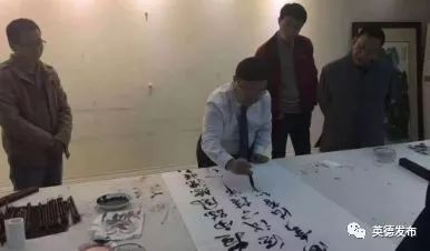 ▲林闻书记和英德市书法协会会长陈传良先生即席挥毫,深入交流