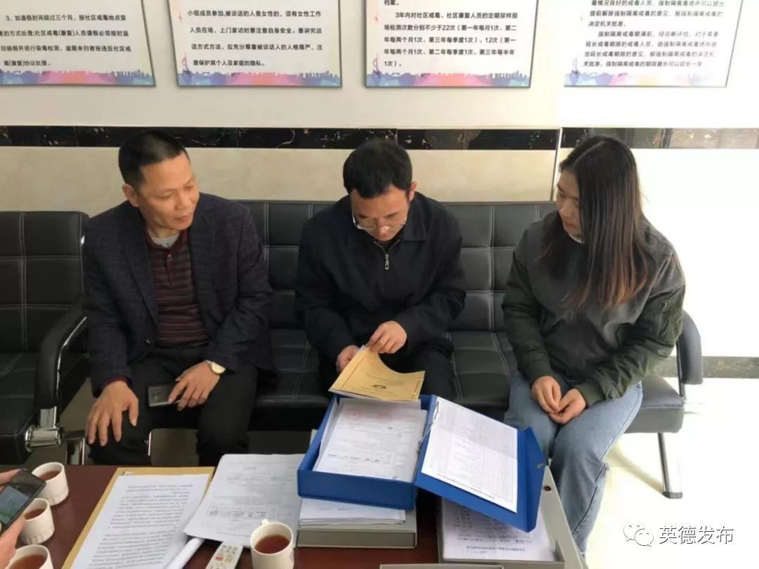在听取大站镇党委副书记钟履干汇报完本镇的禁毒工作情况汇报后,检查组领导详细查看了社区戒毒、社区康复人员的档案建立情况,对发现的问题及时指出并提出解决办法。