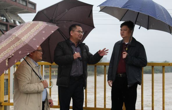 肖勇科一行来到浛洸镇架桥石电站了解察看雨量水位情况。目前,浛洸站水位为34.0米,据水文预测,连江浛洸站最高水位将达34.3米,超警0.3米。浛洸镇在第一时间部署安排了相关防汛工作,要求各驻村领导、干部以及各村居支部书记、干部职工落实防汛工作,加强防汛巡查力度,实时监察水情情况,及时转移沿河低洼地带人员,确保群众安全。