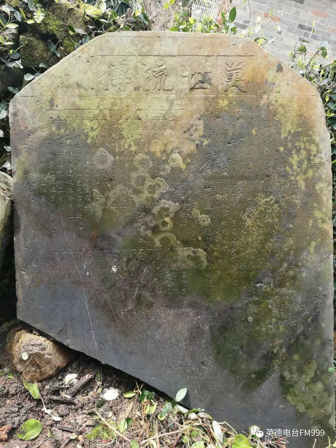 牌坊旁也另有两块碑刻,其一为“万世流传”,落款:皇清乾隆五拾壹年岁次丙午孟秋月吉旦具立簿;记录了立碑之事。当时为表彰五代同堂,年寿过百的袁氏(何士球之妻,28岁守寡)的贞节操行,遵旨营造。